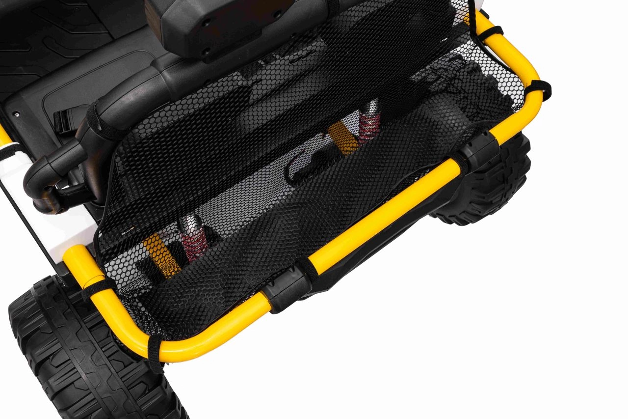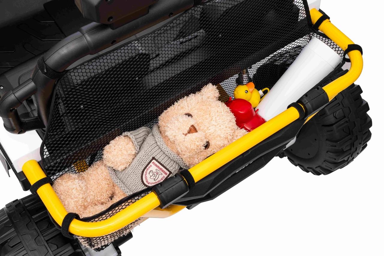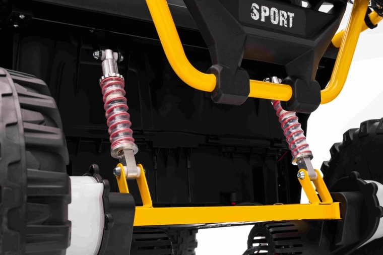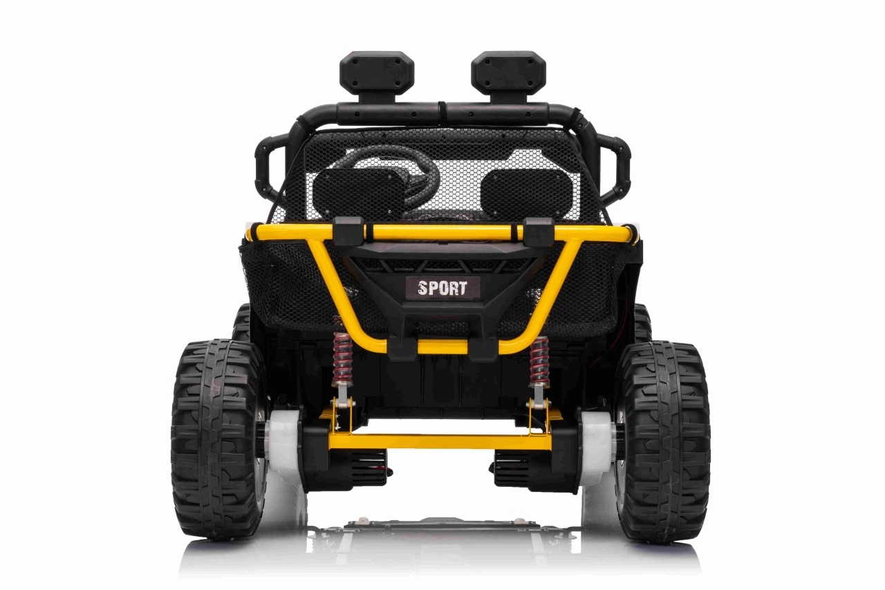 Silné dětské elektrické autíčko ve stylu off-road UTV pro dvě děti nabídne výkonný pohon 2x80 W, baterii 24 V 9 Ah, měkká EVA kola a nezávislé odpružení pro pohodlnou jízdu v terénu. Rodiče ocení dálkové ovládání 2,4 GHz s nouzovým tlačítkem Stop, děti zase LED osvětlení, audio panel s MP3/USB/Bluetooth a dvoumístné sedadlo s pásy.
