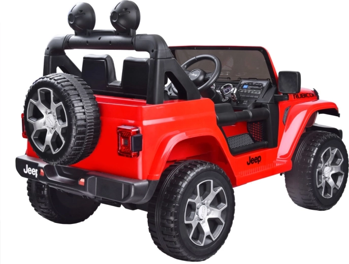 Stylové dětské elektrické autíčko JEEP Wrangler Rubicon 4x4 přináší realistický zážitek z jízdy. Nabízí silný pohon 4x4, 4 motory 45 W, baterii 12 V / 10 Ah a ovládání dálkovým ovladačem 2,4 GHz. Pohodlí a bezpečí zajišťují otevírací dveře, 5bodové pásy, měkká EVA kola a plynulý rozjezd.