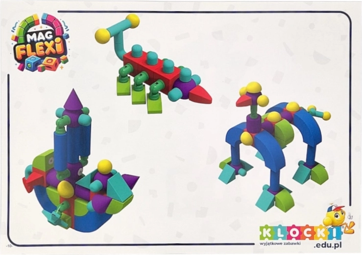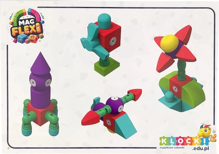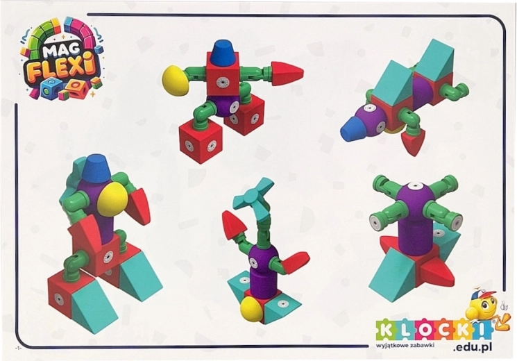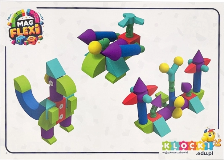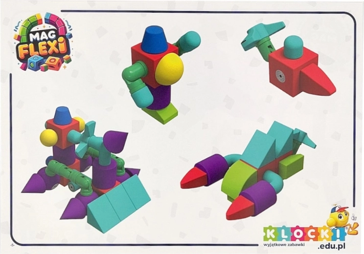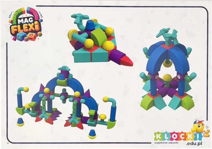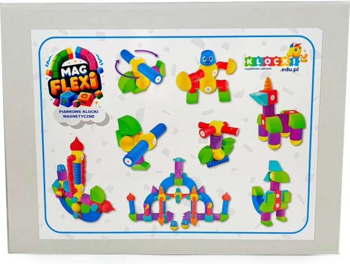 Sada magnetických pěnových kostek MAGFLEXI přináší dětem neomezené možnosti tvorby. Barevné a lehké díly s měkkými hranami jsou příjemné na dotek a podporují bezpečnou hru už od 3 let. Díky magnetům a plastovým ohybným kolínkům lze snadno stavět vozidla, postavičky i prostorové stavby.