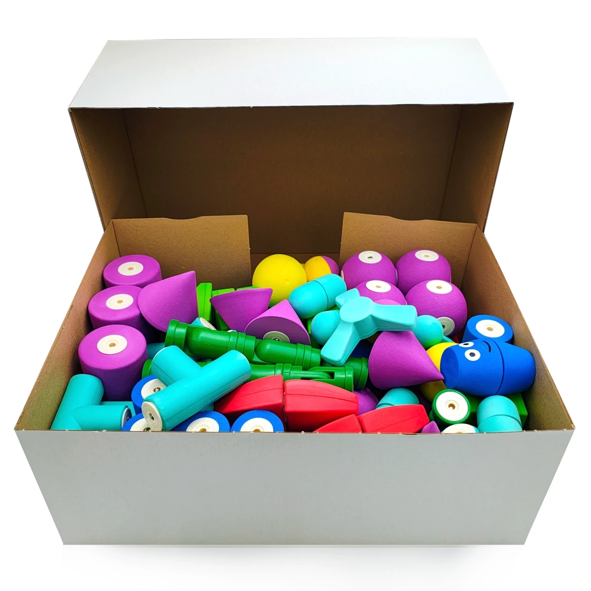 V balení najdete rozmanité tvary – kola, trojúhelníky, čtverce, distanční prvky a kloubové spoje – které podporují logické myšlení, koordinaci ruka–oko a kreativitu. Přiložené karty s nápady pomohou začátečníkům a inspirují k vlastním projektům.