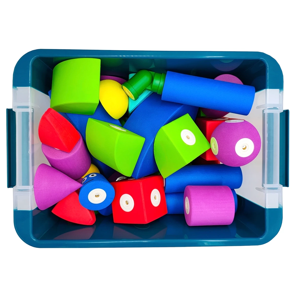 Odolný plastový kontejner s víkem udrží všechny díly pohromadě. Snadné přenášení, rychlý úklid a pořádek po každém stavění.