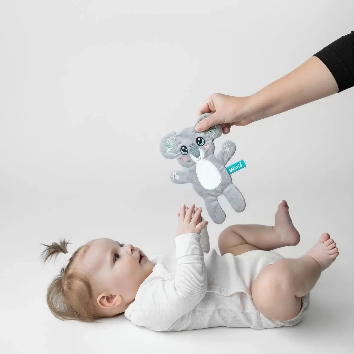 Šusticí látková koala od značky Mom's Care je jemná senzorická hračka pro novorozence 0+, která podporuje rozvoj smyslů a uklidňuje díky delikatnímu šustění. Lehká a plochá konstrukce se skvěle drží v malých ručičkách, měkký velvet je příjemný na dotek a hypoalergenní materiály zajišťují bezpečí. Ideální do postýlky, kočárku i autosedačky.