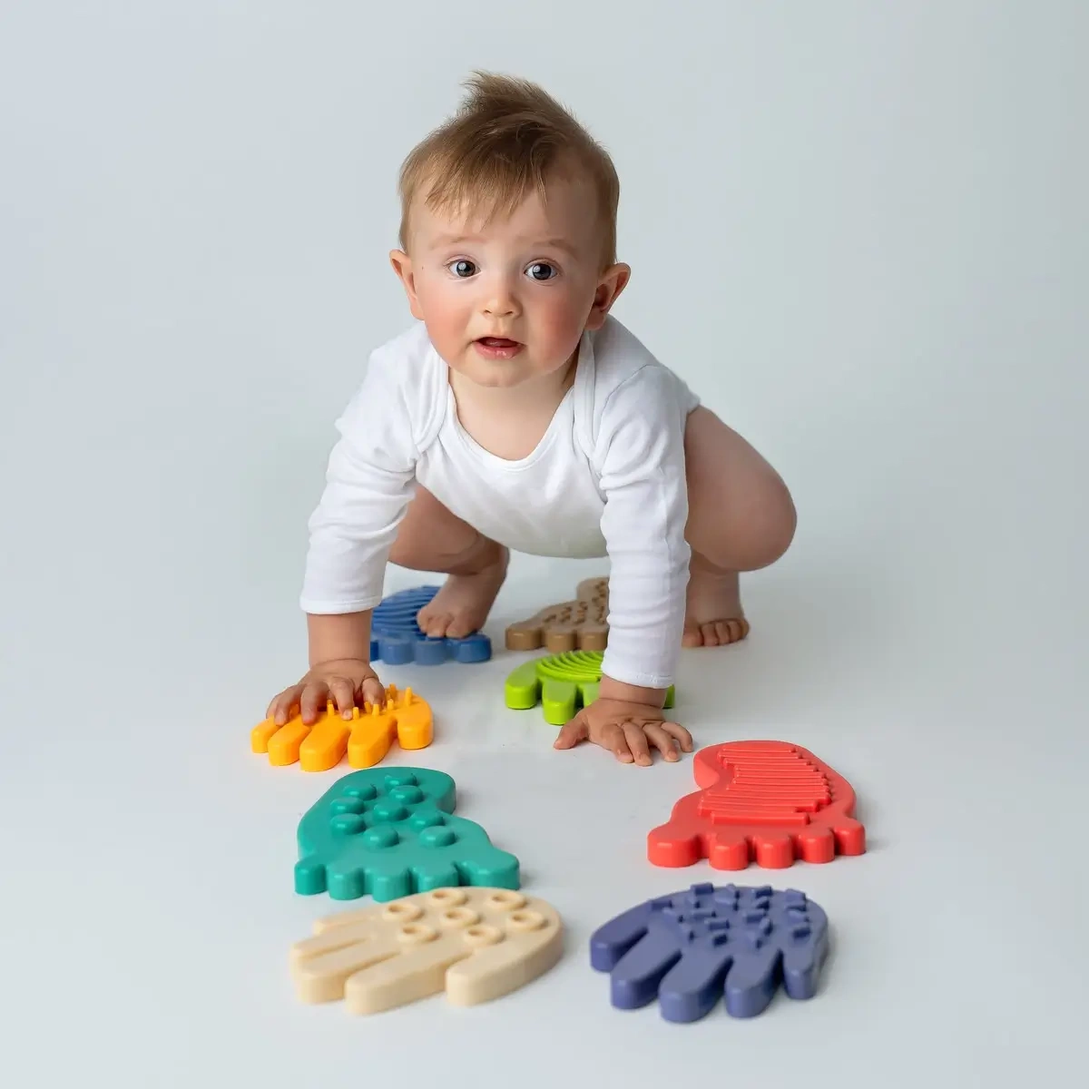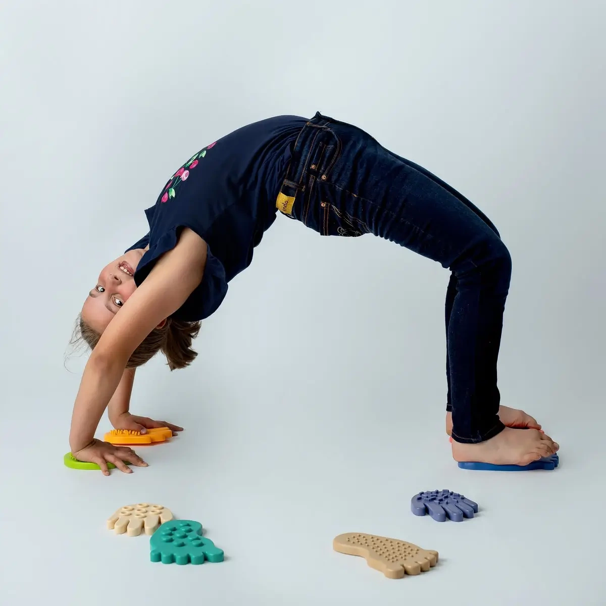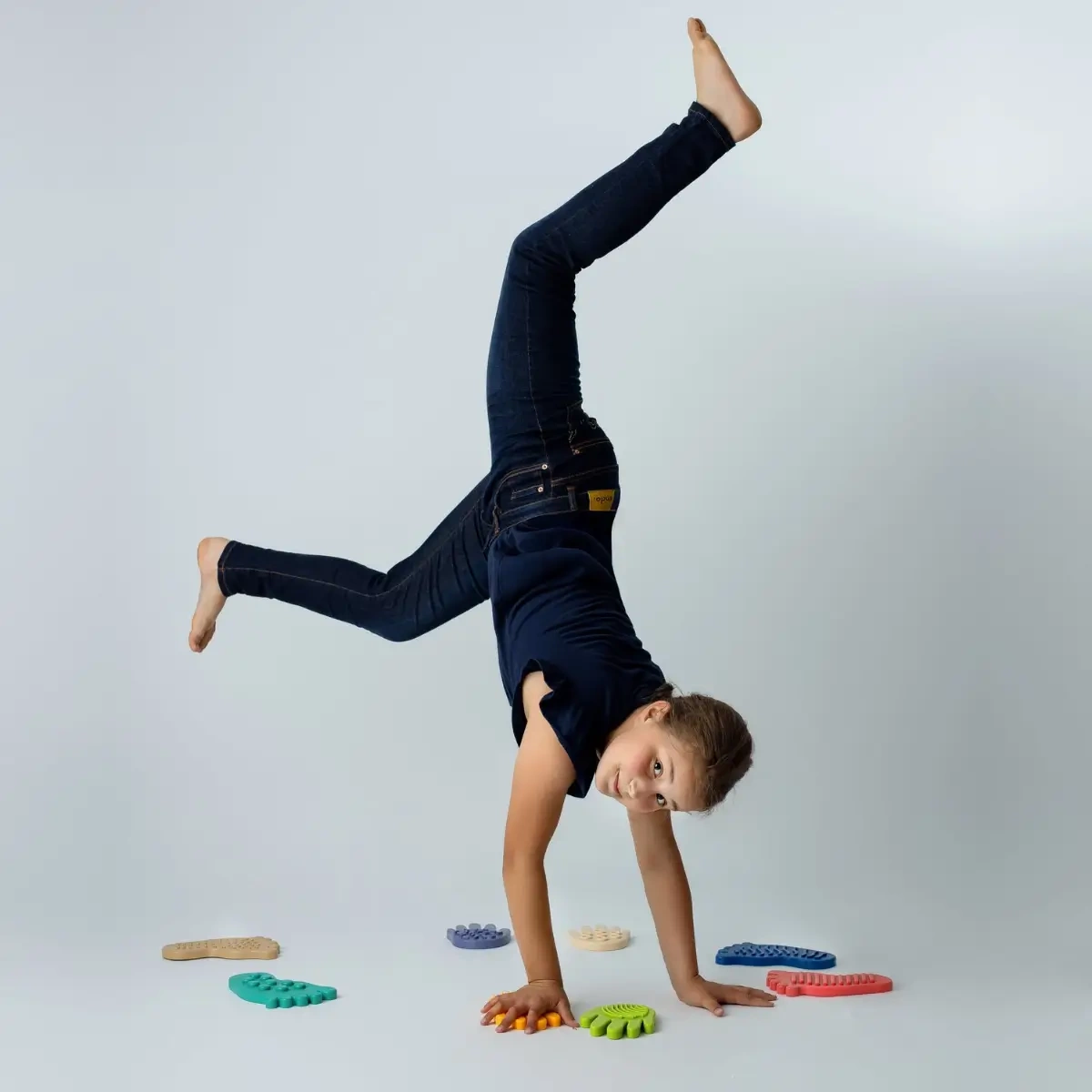 SENSORKY přinášejí dětem pestrý svět dotykových vjemů. Chůze a lezení po prvcích s různými povrchy posiluje drobné svaly nohou i rukou, zlepšuje vnímaní vlastního těla a přispívá k lepší integraci smyslových podnětů. Produkt oceněný Kids' Time Star 2025 spojuje herní motivaci s promyšlenou senzorickou stimulací a je skvělým pomocníkem při každodenním cvičení.