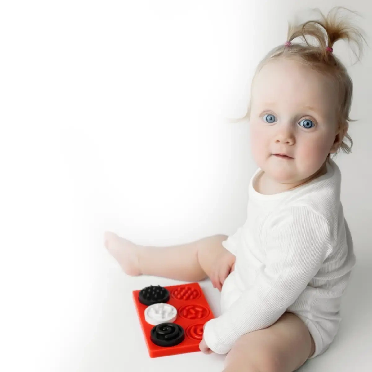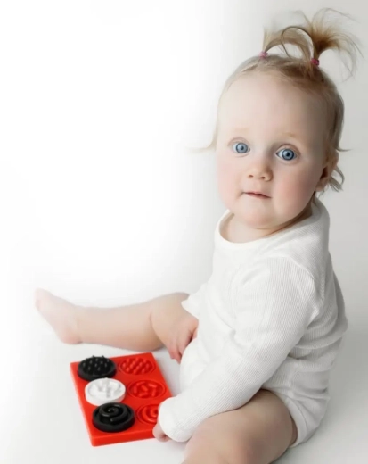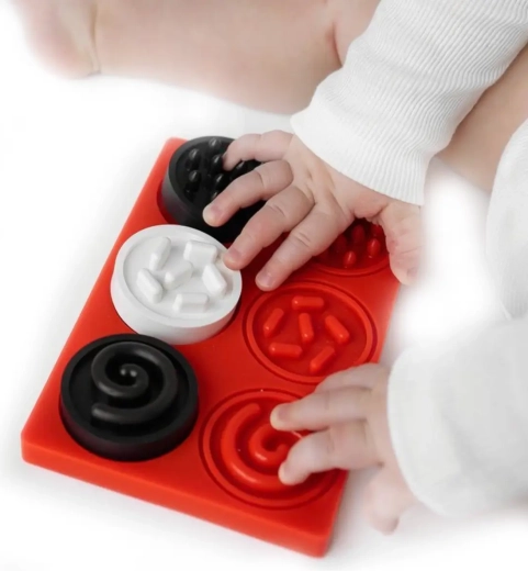 Senzorické puzzle kroužky přinášejí dětem od raného věku bezpečné objevování světa dotekem. Tři kroužky s odlišnými povrchy a kontrastními pastelovými barvami lákají k uchopení, zkoumání a vkládání do odpovídajících otvorů. Hra přirozeně rozvíjí koordinaci oko–ruka, jemnou motoriku i vnímání barev a tvarů.