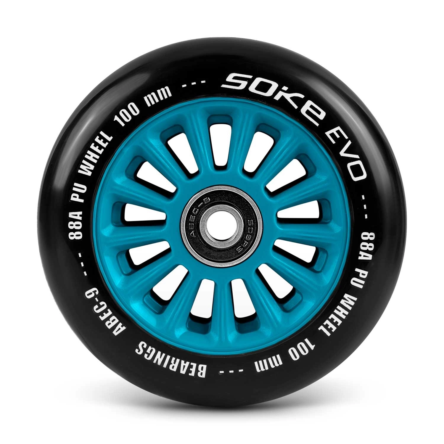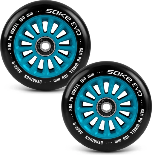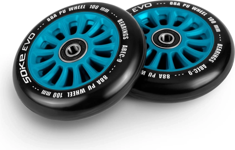 Díky průměru 100 mm jsou ideální pro většinu freestyle a městských koloběžek. Odolný střed se žebry a přesné zpracování zaručují stabilitu i při vyšší zátěži.