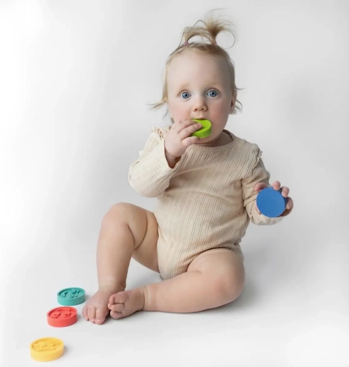 Objevte svět citů s vaším miminkem díky sadě šesti měkkých, barevných kotoučků Mom's Care. Každý disk zobrazuje jinou emoci a nabízí různé textury pro smyslovou stimulaci, rozvoj jemné motoriky a učení emocí. Bez otvorů pro hygienické hraní i ve vodě, bezpečné materiály bez ftalátů a snadné uchopení malými ručkami.