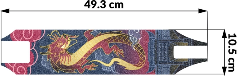 Grip tape SOKE Pro Dragon dodá vaší freestyle koloběžce jistotu, pohodlí a styl. Hrubý brusný povrch zajišťuje spolehlivou trakci bot i při náročných tricích, zatímco pevná lepící vrstva drží pásku na místě. Díky univerzální šířce a délce lze snadno přizpůsobit většině desek.
