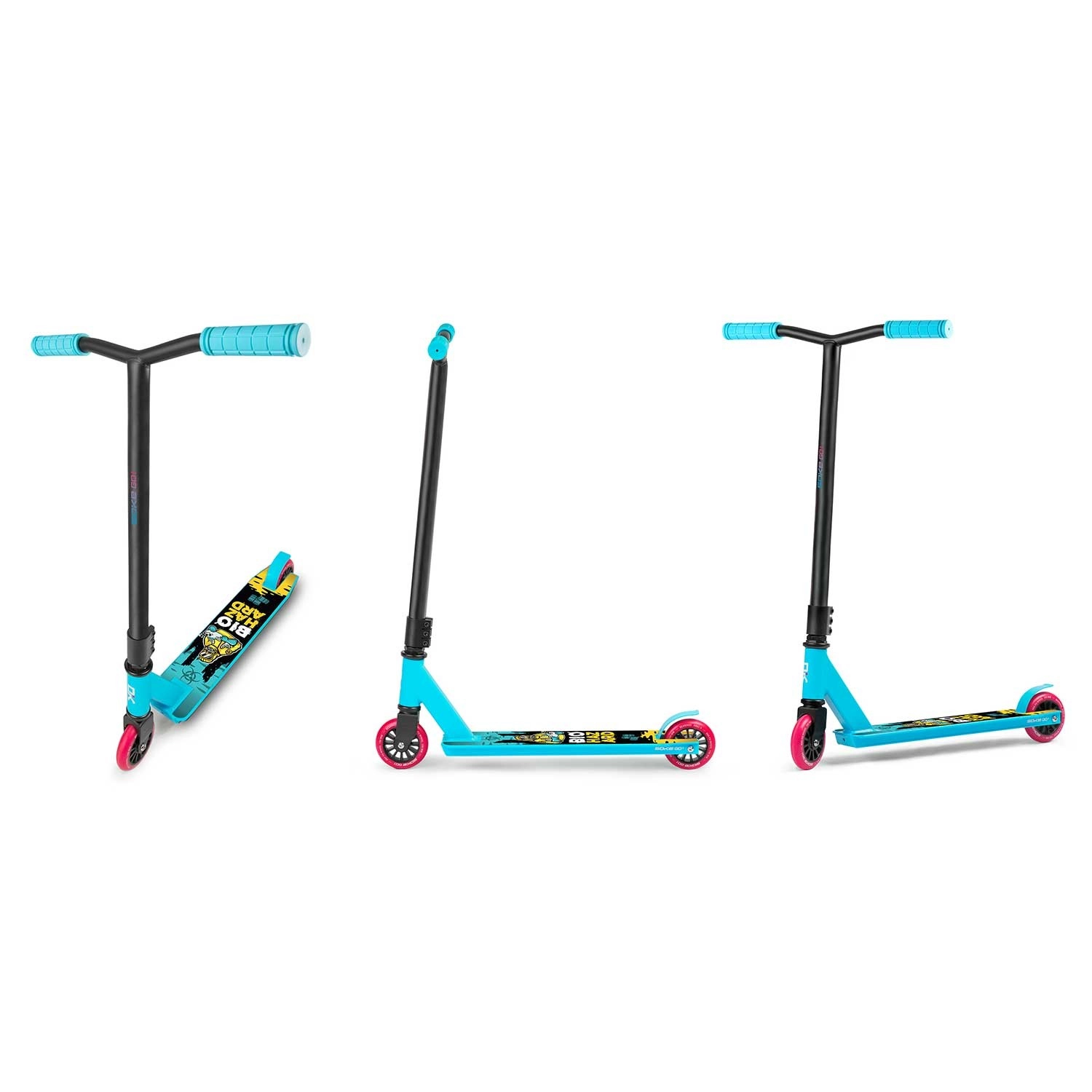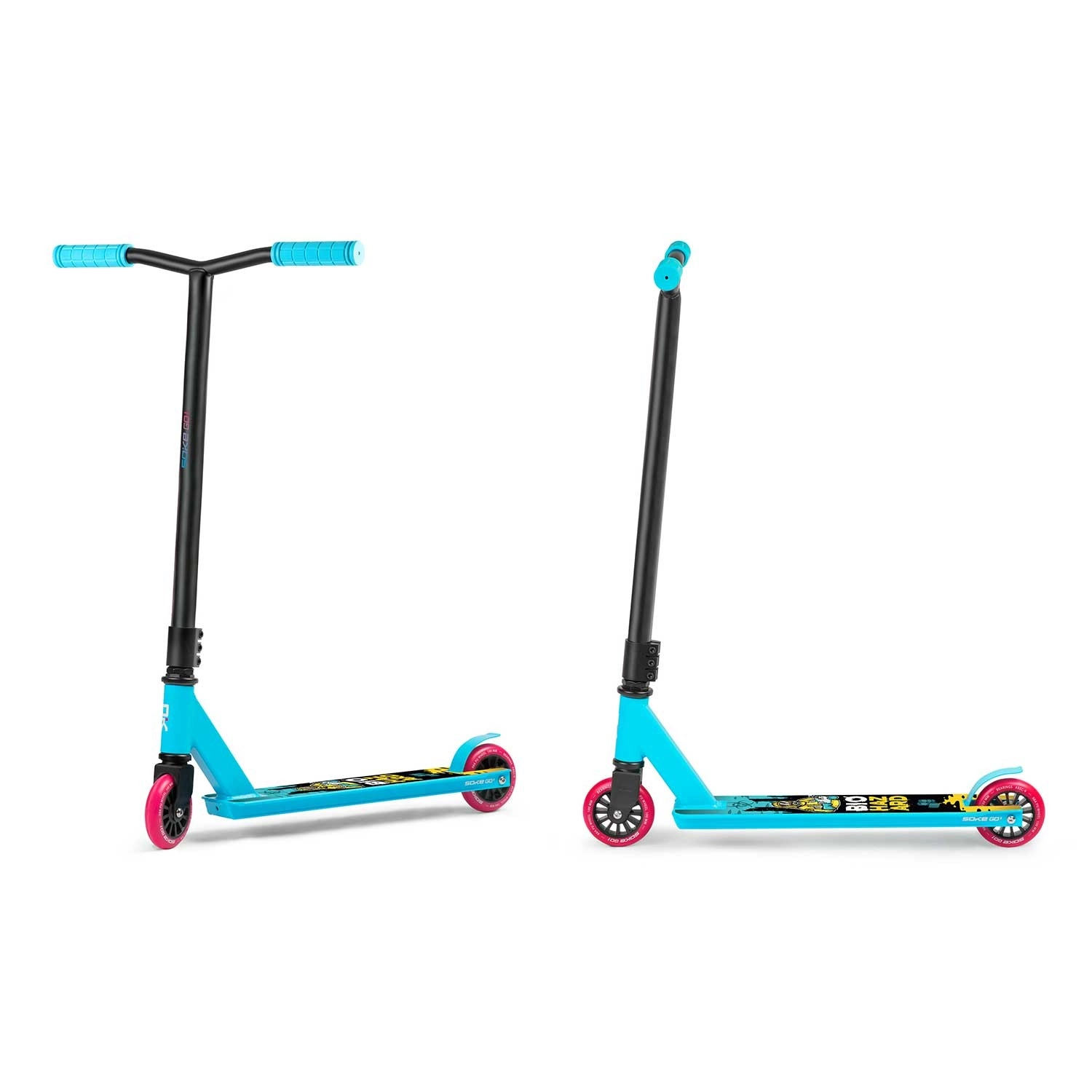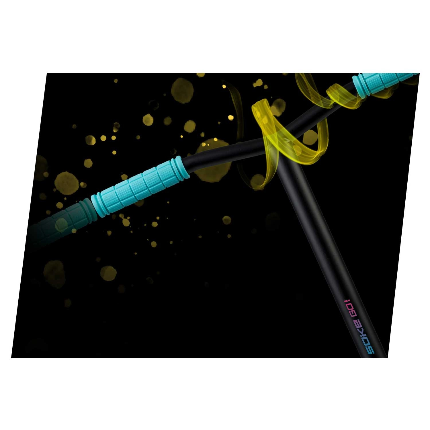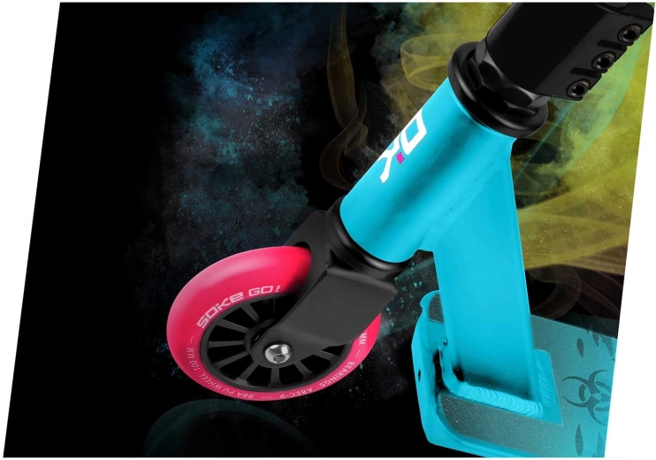 Model SOKE GO! v tyrkysové barvě je navržen pro jistotu při tricích, rychlou akceleraci a dlouhou životnost. Široká Y řídítka s pohodlnými TPR gripy 145 mm dávají výbornou stabilitu, zatímco tuhá hliníková trojitá objímka drží vše pevně pohromadě. Nízká hmotnost 2,9 kg pomáhá při whipech i spinech.