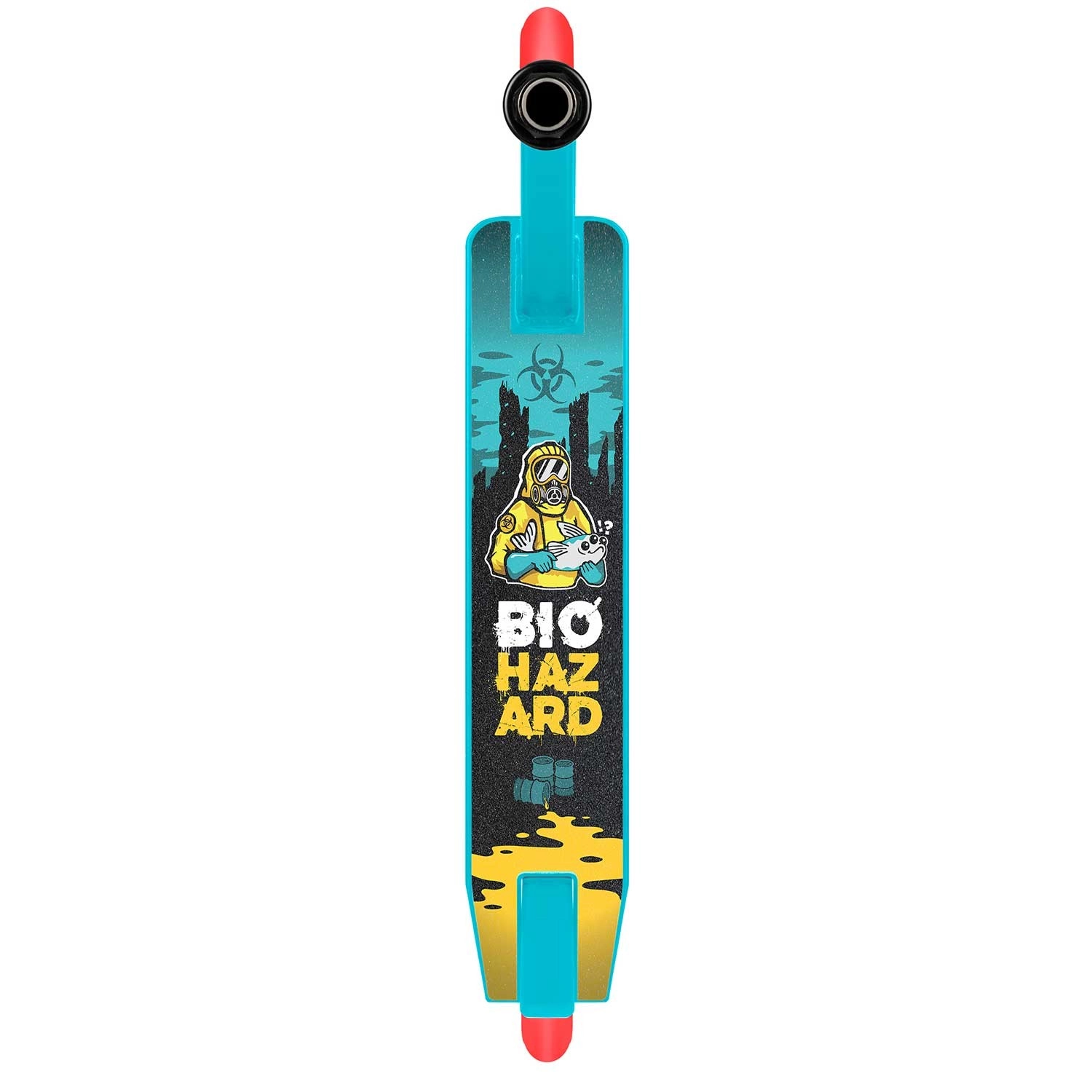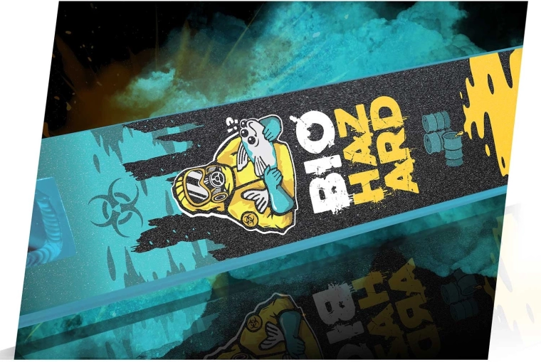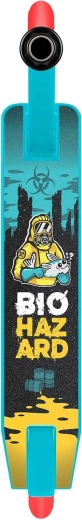 Deck peg-cut (48 x 10 cm) je připravený na pegy a má jednodílnou konstrukci s kvalitními svary. Ložiska ABEC‑9 s chromovanou ocelí a gumovým těsněním zajišťují hladký chod a ochranu proti prachu a vodě. PU kola 100 x 24 mm, tvrdost 88A s úzkým profilem pro vyšší rychlost a spoked jádrem skvěle tlumí drobné vibrace a drží stopu.