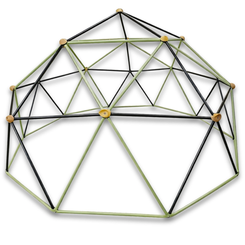 Tato lezecká kopule promění vaši zahradu v atraktivní dětské hřiště. Geodetická konstrukce z ocelových trubek zajišťuje vysokou stabilitu a variabilní úchyty nabízejí mnoho tras pro lezení, zavěšení i šplh. Povrch je ošetřen práškovým lakem pro dlouhou životnost a odolnost vůči počasí.