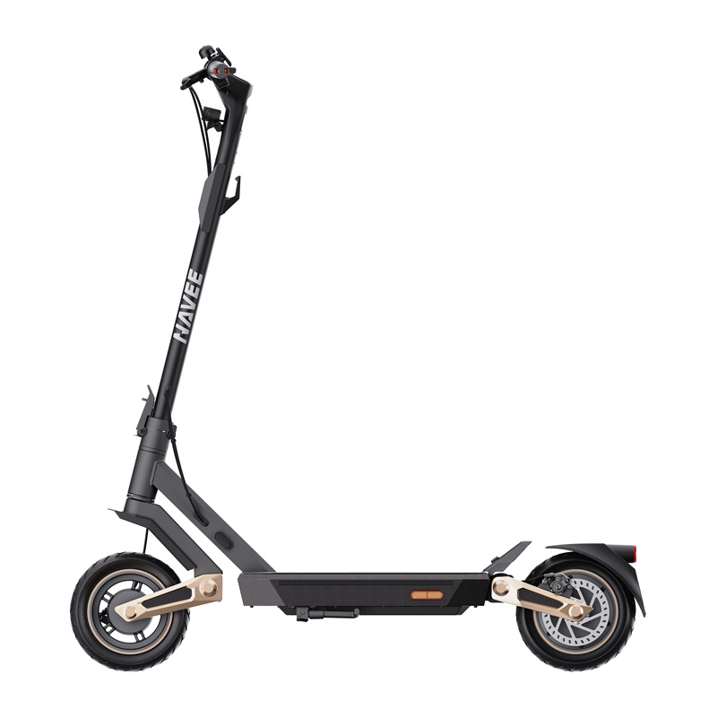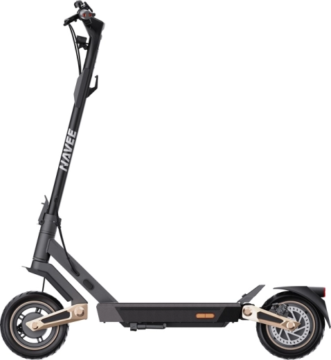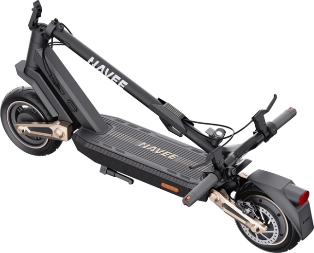 Promyšlený design doplňují 10" bezdušové pneumatiky s gelovou vrstvou odolné proti defektu (až do 4 mm), ergonomická řídítka s úhlem 5° pro přirozený úchop, širší nášlap a vyšší světlá výška pro snadné překonávání nerovností. Aplikace NAVEE nabídne Apple Find My, automatické odemknutí přiblížením, elektronický zámek, přehled jízd, nastavení rekuperace i automatické zapínání světel při šeru.