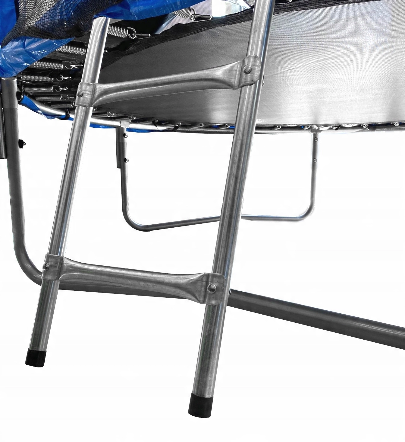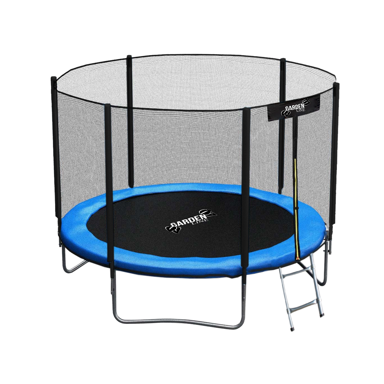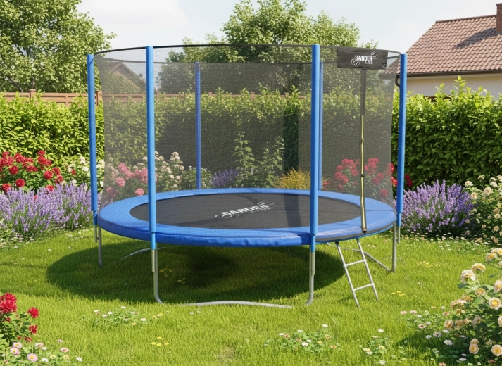 Díky 42 pružinám je odraz plynulý a dynamický, zatímco tři dvojité U nohy dávají celé konstrukci pevnou stabilitu na trávě i pevném povrchu. Praktický kovový žebřík usnadní bezpečný vstup i dětem.