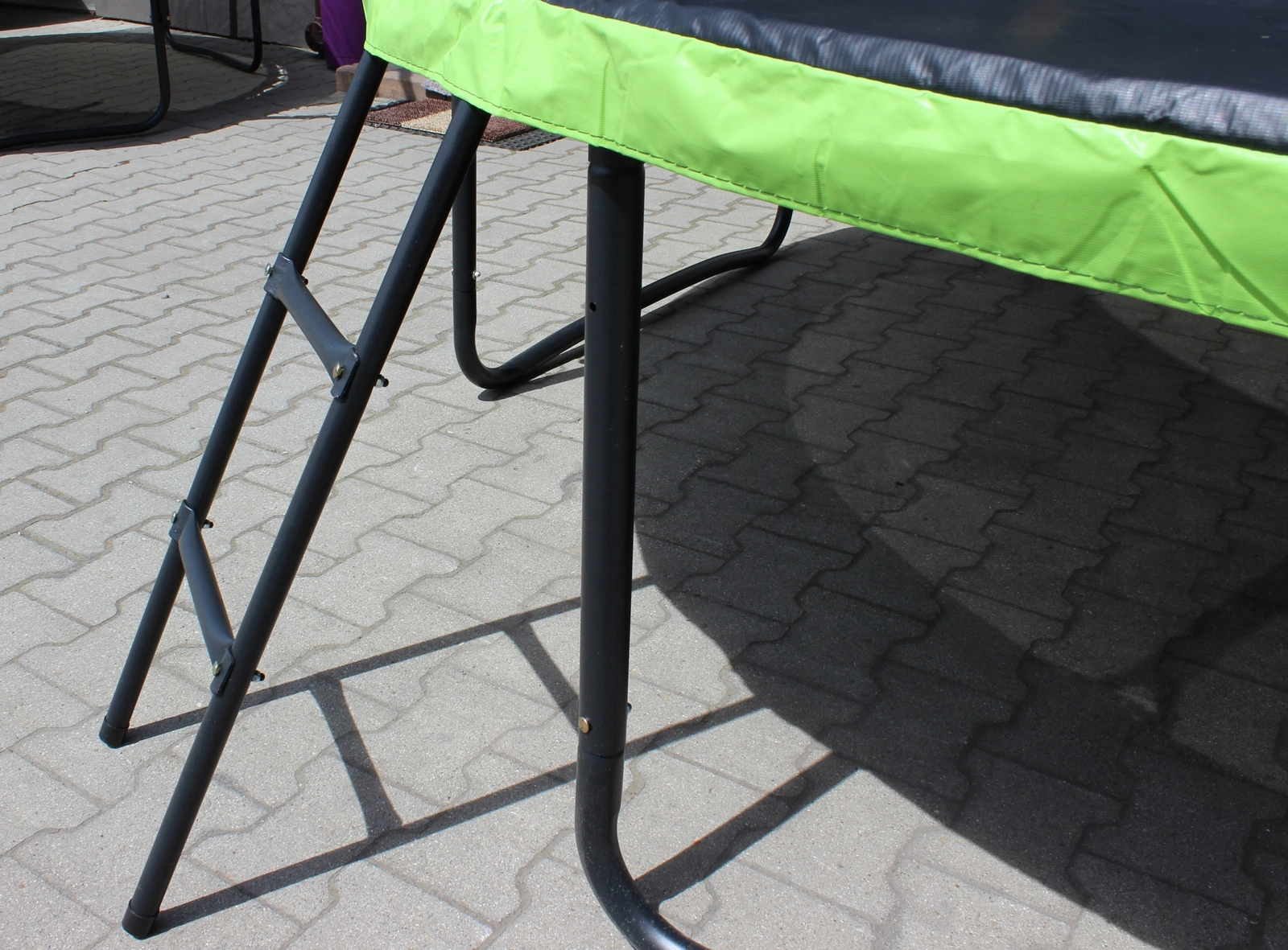 Čtyři dvojité U nohy a ocelová konstrukce zajišťují stabilitu. Přiložený žebřík usnadňuje nástup i výstup.