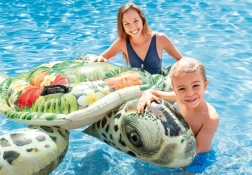 Nafukovací želva INTEX přináší skvělou zábavu do každého bazénu. Její ergonomický tvar zajišťuje pohodlí a stabilitu, zatímco realistické provedení s tropickými motivy z ní dělá nepřehlédnutelný doplněk letních radovánek. Díky dvěma vzduchovým komorám a pevným madlům si děti i dospělí užijí bezpečnou jízdu.