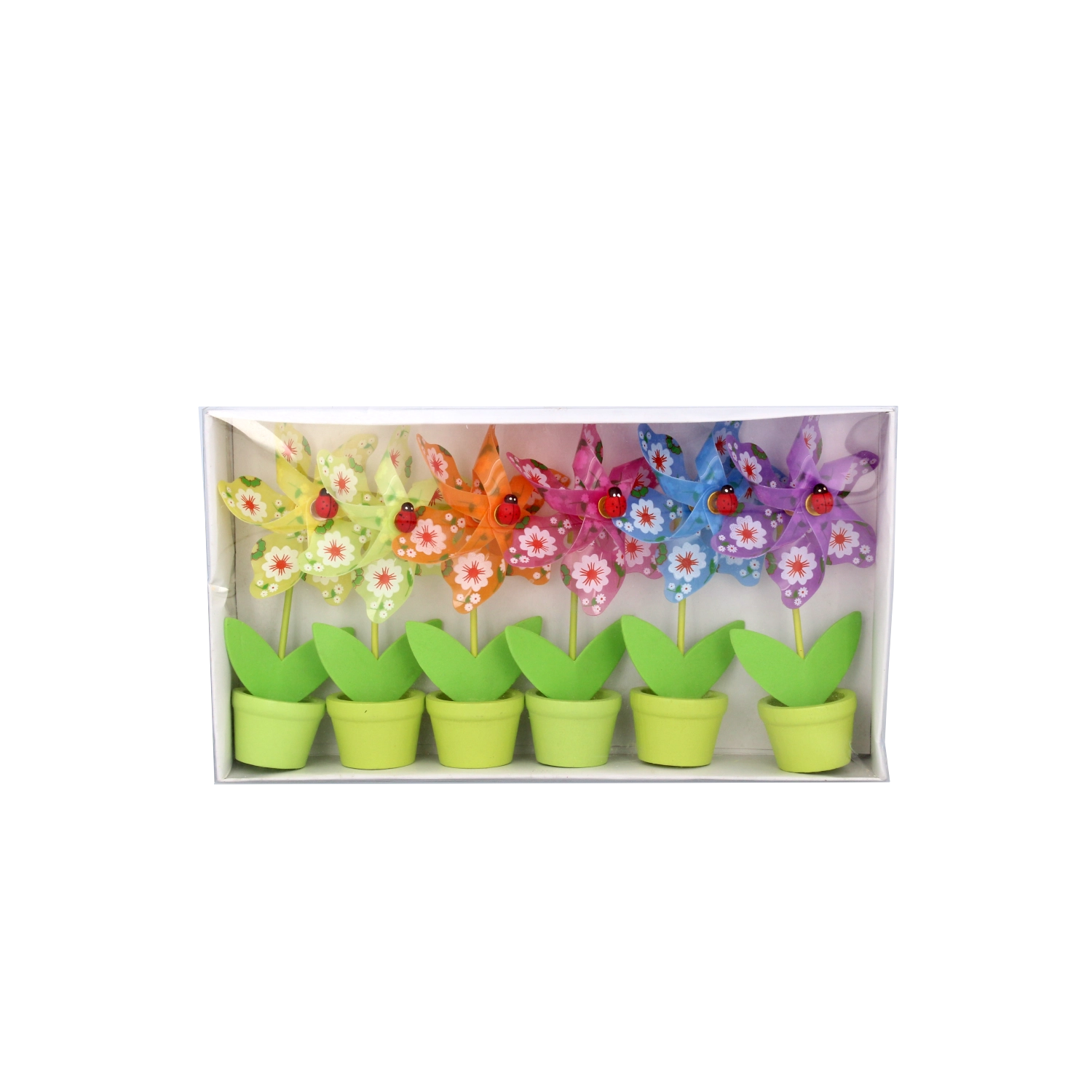 Každý větrník má hravý květinový motiv s malou beruškou a je dostupný v šesti jasných barevných variantách, které rozsvítí každý prostor.