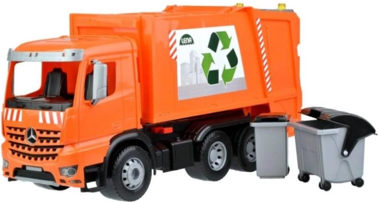 Oranžové popelářské auto Mercedes‑Benz Arocs od značky Lena přináší dětem realistickou hru na třídění odpadu. Nabízí pevné kovové osky kol (6 mm), odolný plast, pojistku proti nechtěnému vyklopení a dvě popelnice pro ještě větší zábavu a učení.