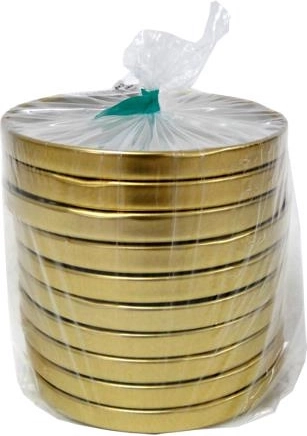 Praktická sada 10 zlatých víček o průměru 82 mm se 4 závity je ideální pro bezpečné uzavření sklenic s domácími zavařeninami a kompoty. Díky kvalitnímu zpracování z pozinkovaného kovu jsou víčka odolná vůči kyselině citronové, vařené soli a octu. Vnitřní těsnicí vrstva zajišťuje hermetické uzavření, prodlužuje trvanlivost a udržuje čerstvost potravin, zatímco elegantní zlatá barva dodá vašim výrobkům reprezentativní vzhled.
