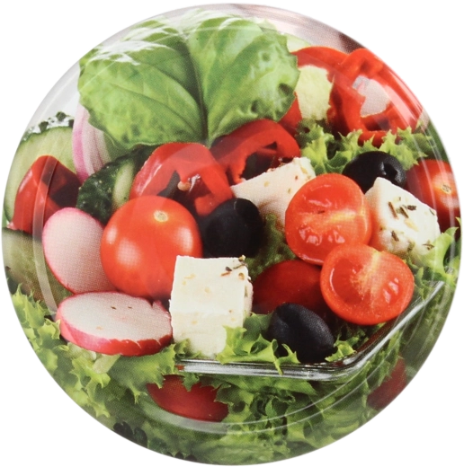 Estetický barevný potisk s motivem zeleniny nejen ozdobí vaše sklenice, ale také usnadní přehled a identifikaci obsahu ve spíži. Víčka jsou určena pro opakované použití po důkladném umytí a splňují požadavky pro styk s potravinami.