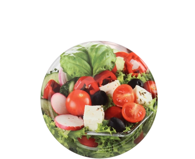 Spolehněte se na odolná kovová víčka s průměrem 66 mm a čtyřmi záchyty, která zajišťují těsné uzavření bez protékání. Dekor se zeleninovým motivem oživí vaše sklenice a dodá domácím zásobám profesionální vzhled.