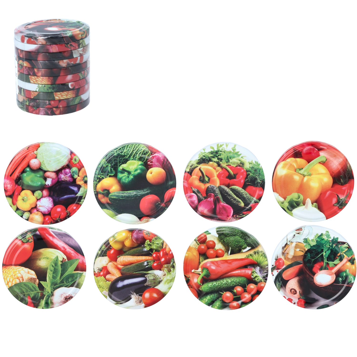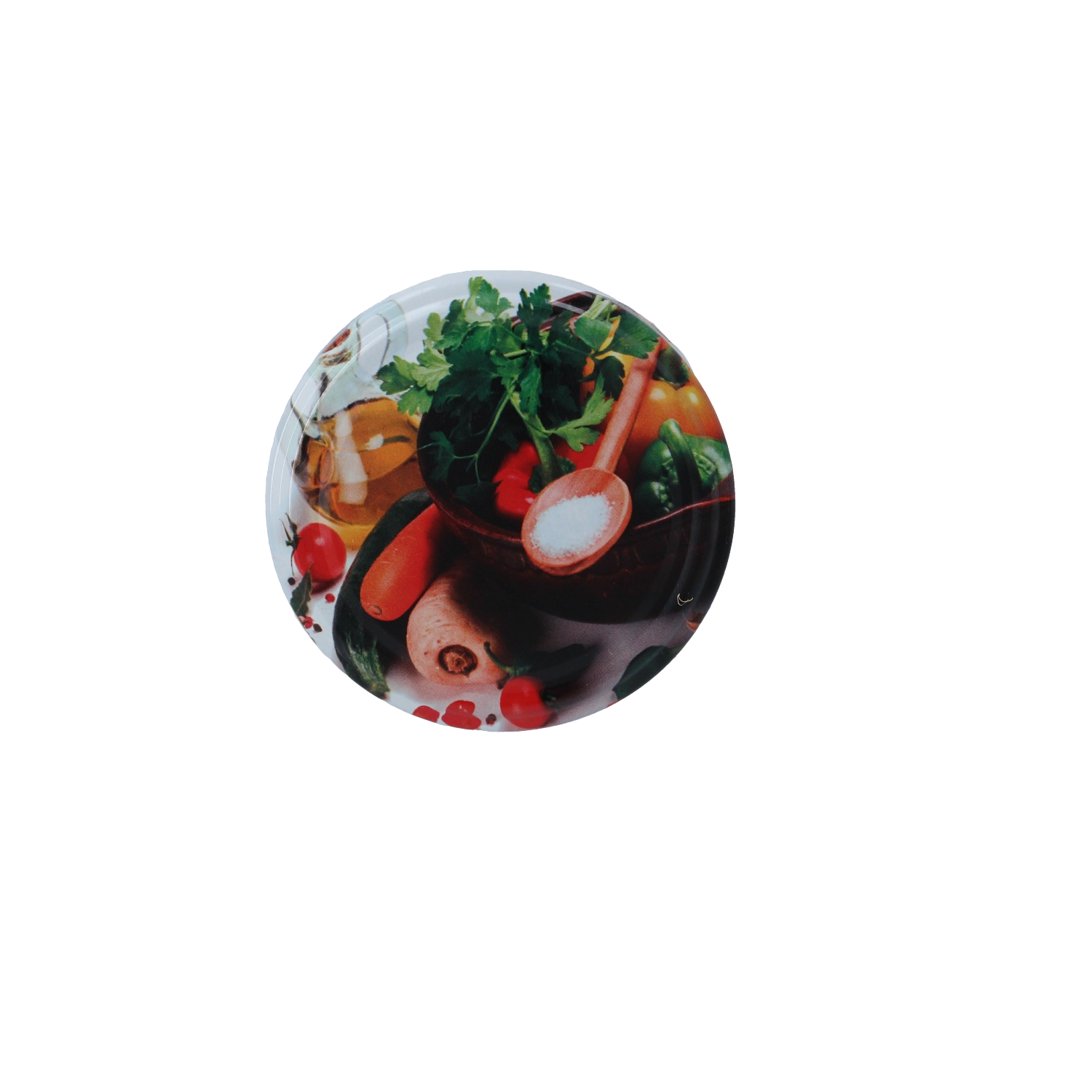 Vyrobená z vysoce kvalitního kovu vhodného pro styk s potravinami, chrání před vysycháním, vlhkostí a oxidací. Lesklý povrch s barevným zeleninovým motivem dodá zavařeninám čistý a estetický vzhled v každé kuchyni. Víčka jsou určena pro opakované použití a snadnou údržbu.