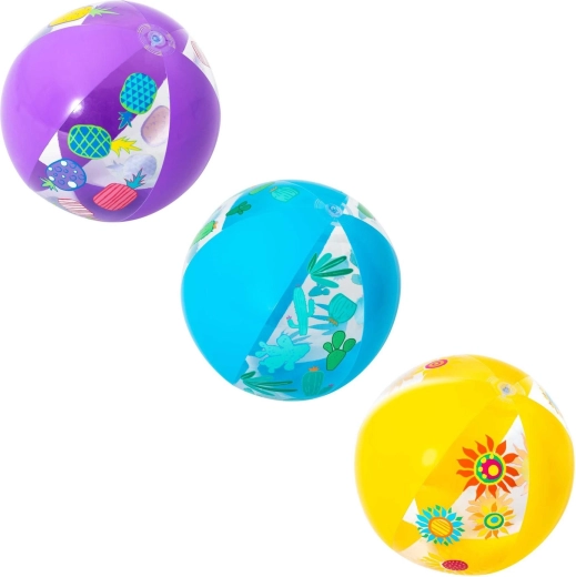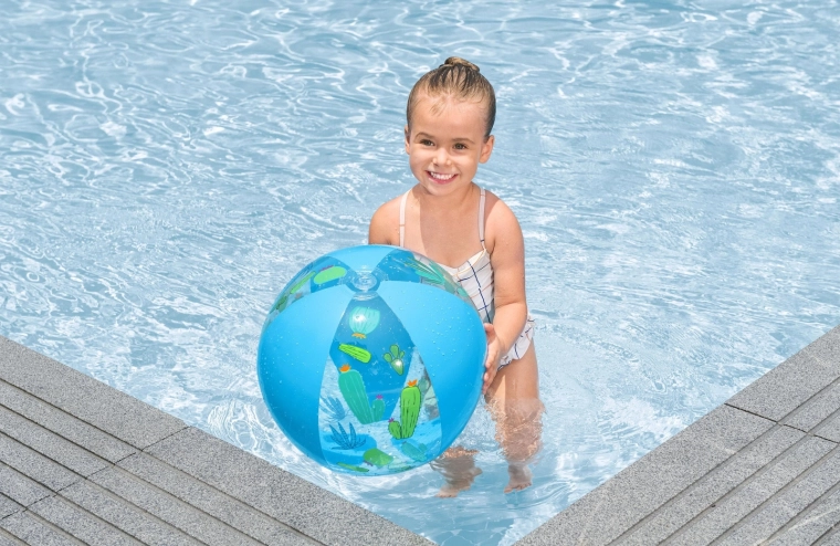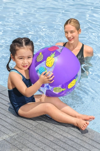 Nafukovací míč BESTWAY s průměrem 51 cm je perfektní volbou pro vodní hry, plážové aktivity i letní dovolené. Díky lehké konstrukci z odolného PVC se snadno přenáší, rychle nafukuje a skvěle plave na hladině. Průhledné panely s barevnými tropickými potisky (ovoce, květy, kaktusy) dodají každé hře šmrnc.