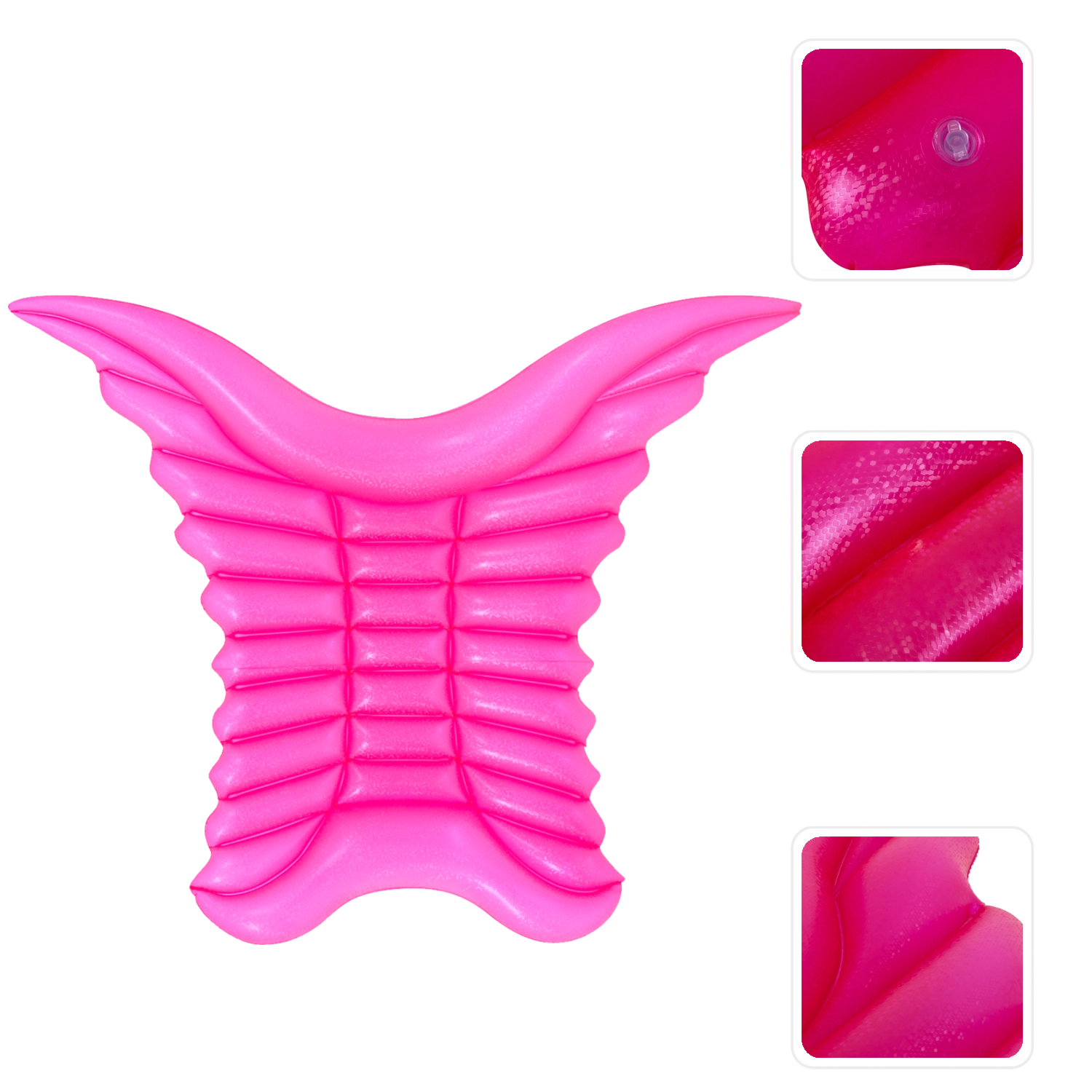 Nafukovací matrace Andělská křídla promění každé koupání v zábavný a fotogenický zážitek. Díky velkorysým rozměrům pohodlně odpočinete u vody i na pláži, zatímco tři samostatné komory přidávají na stabilitě a bezpečí. Povrch z odolného vinylu odolá běžnému používání a snadno se čistí.