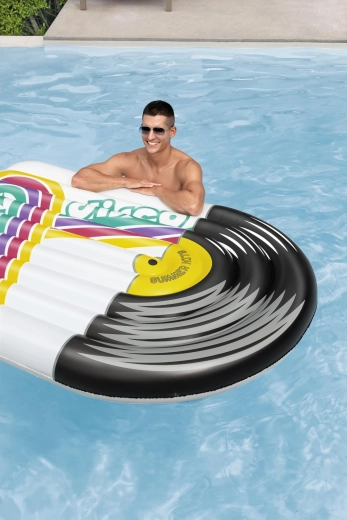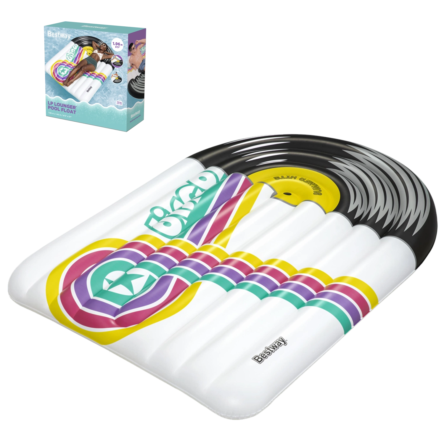 Užijte si léto ve stylu s nafukovacím lehátkem Bestway LP Lounger ve vzhledu vinylové desky. Velká plocha 196 × 145 cm, stabilní I‑beam konstrukce a ochranná vrstva Color Shield pro zářivé barvy bez pouštění barvy na kůži. Ideální pro relax u bazénu, na jezeře i k moři.