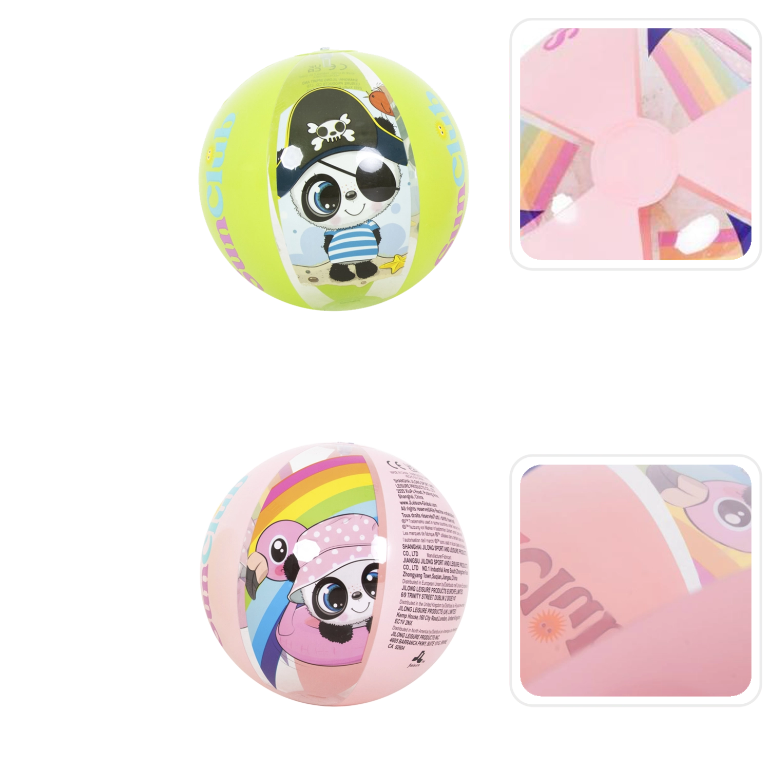 Veselý nafukovací míč s motivy pandy rozzáří každé koupaliště i pláž. Díky průměru 40 cm a lehké konstrukci z odolného vinylu je ideální pro hraní ve vodě i na souši. Dostupný v mixu barevných vzorů, vhodný pro děti od 2 let.