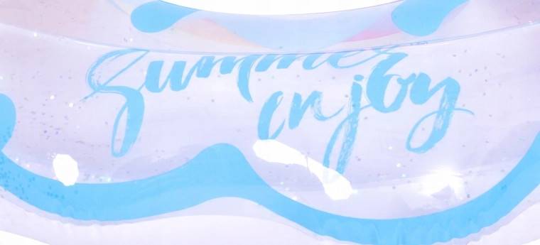Průhledné PVC s barevnými pruhy a lesklými flitry zaručí, že budete na vodě nepřehlédnutelní – zábava a styl v jednom.