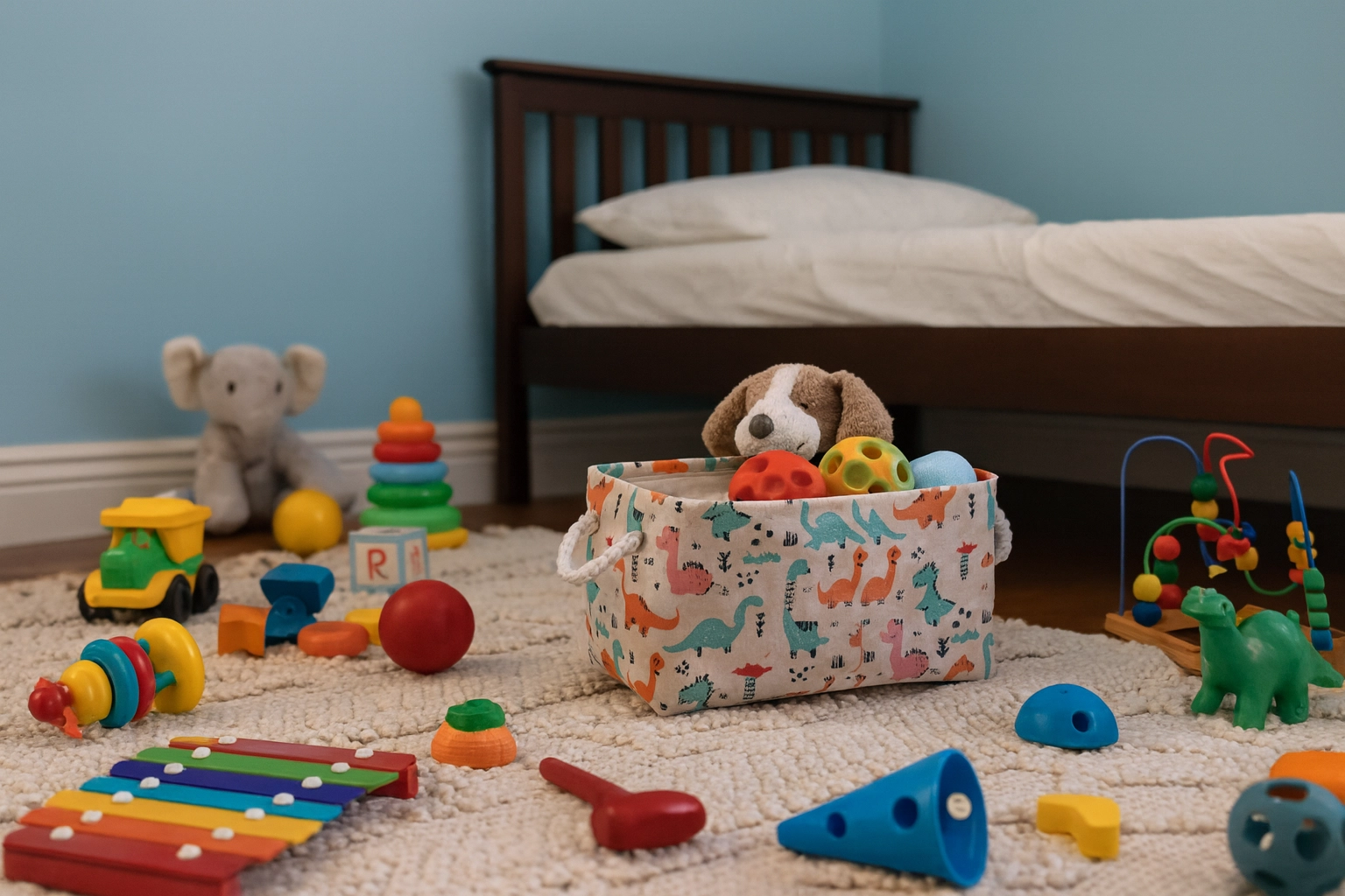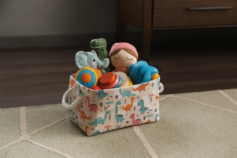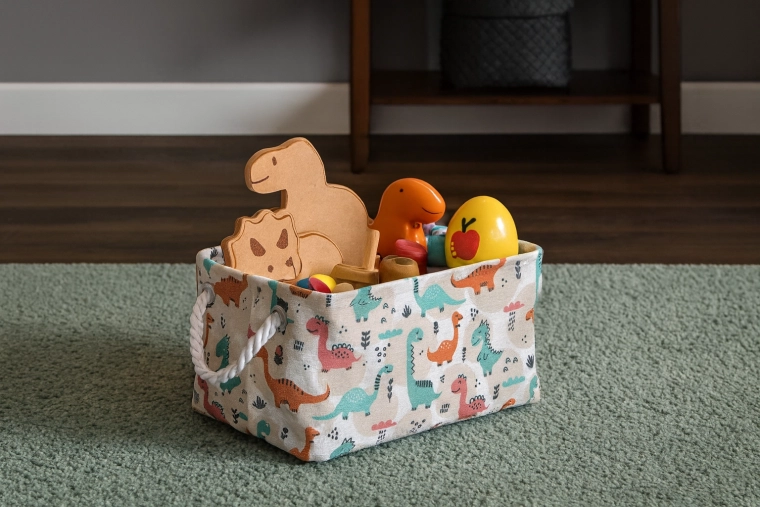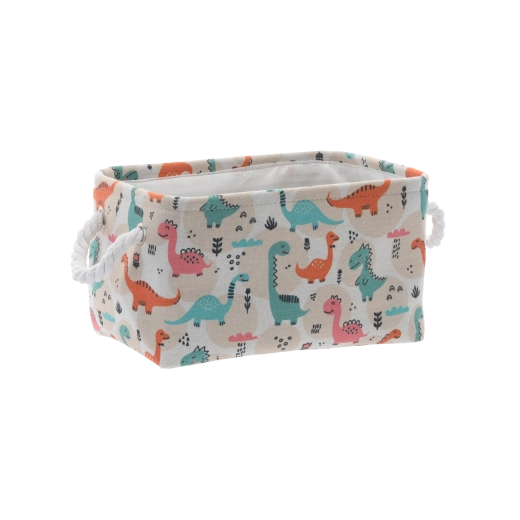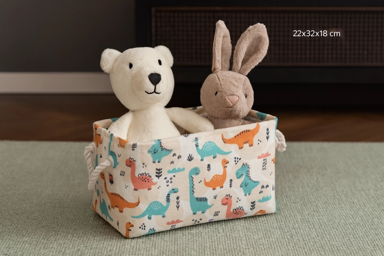Textilní koš s barevnými dinosaury je ideální volbou pro přehledné uložení hraček, knížek i drobností. Měkké strany šetří nábytek i podlahu a otevřený horní vstup umožňuje dětem snadný přístup. Lehká, ale pevná konstrukce z odolného polyesteru zvládne každodenní používání i časté přenášení mezi místnostmi.