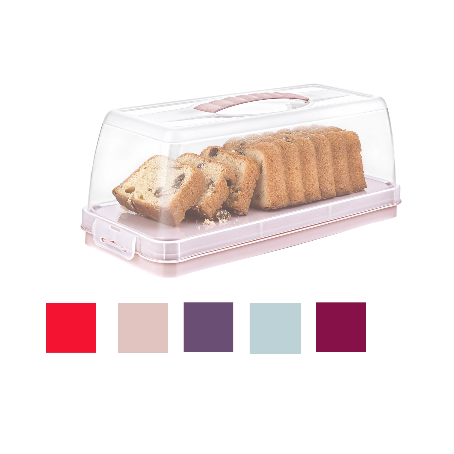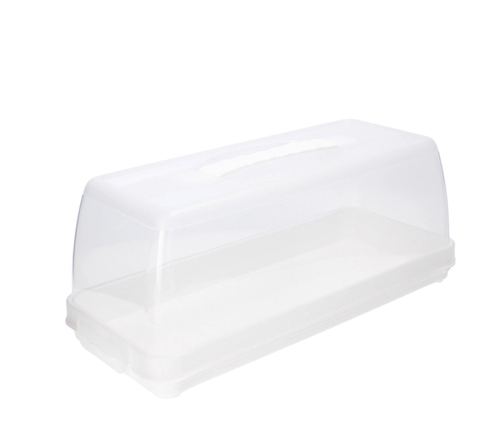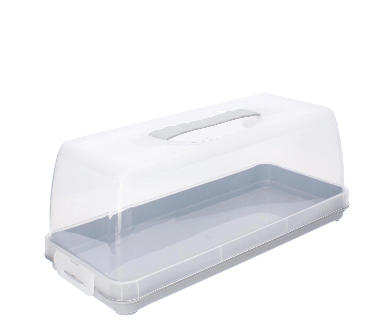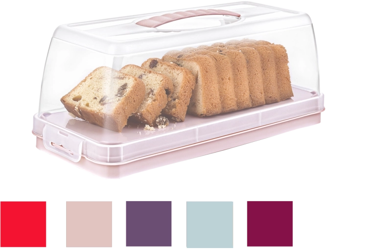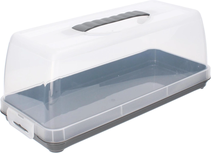 Pevné boční klipy a integrovaná rukojeť udrží víko spolehlivě na místě a usnadní přepravu dortů, chlebů i zákusků bez rizika posunu.