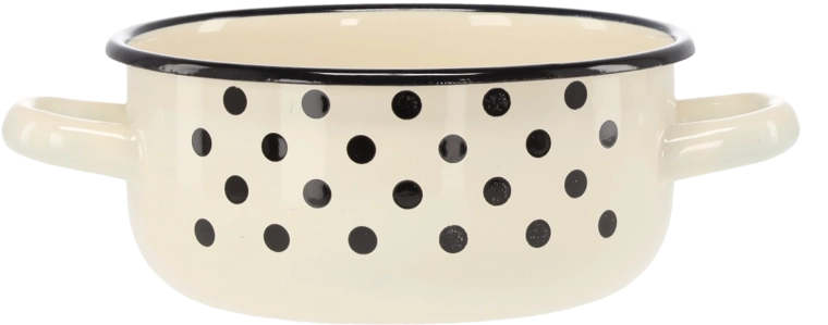 Smaltovaný povrch je známý svou odolností proti poškrábání, snadným čištěním a hygieničností. Atraktivní puntíkový dekor dodá vaší kuchyni šmrnc a styl.