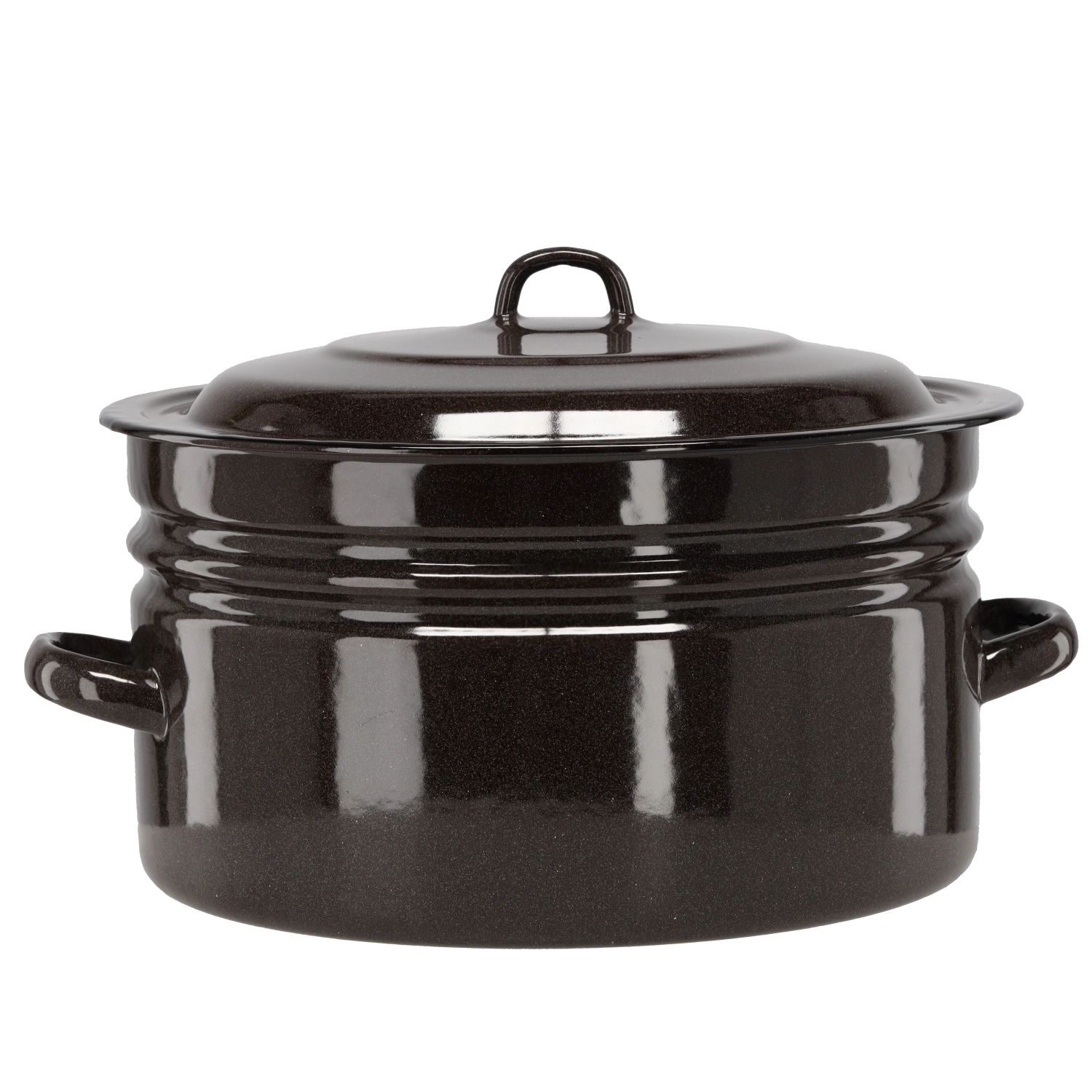 Prostorný emaliovaný hrnec o objemu 25 litrů a průměru 40 cm v elegantní hnědé barvě je ideální pro velké porce polévek, dušených jídel i zavařování. Odolný ocelový korpus s emaliovaným povrchem zajišťuje dlouhou životnost, snadné čištění a vysokou hygienu. Součástí je emaliovaná poklice a kompatibilita se všemi typy sporáků včetně indukce.