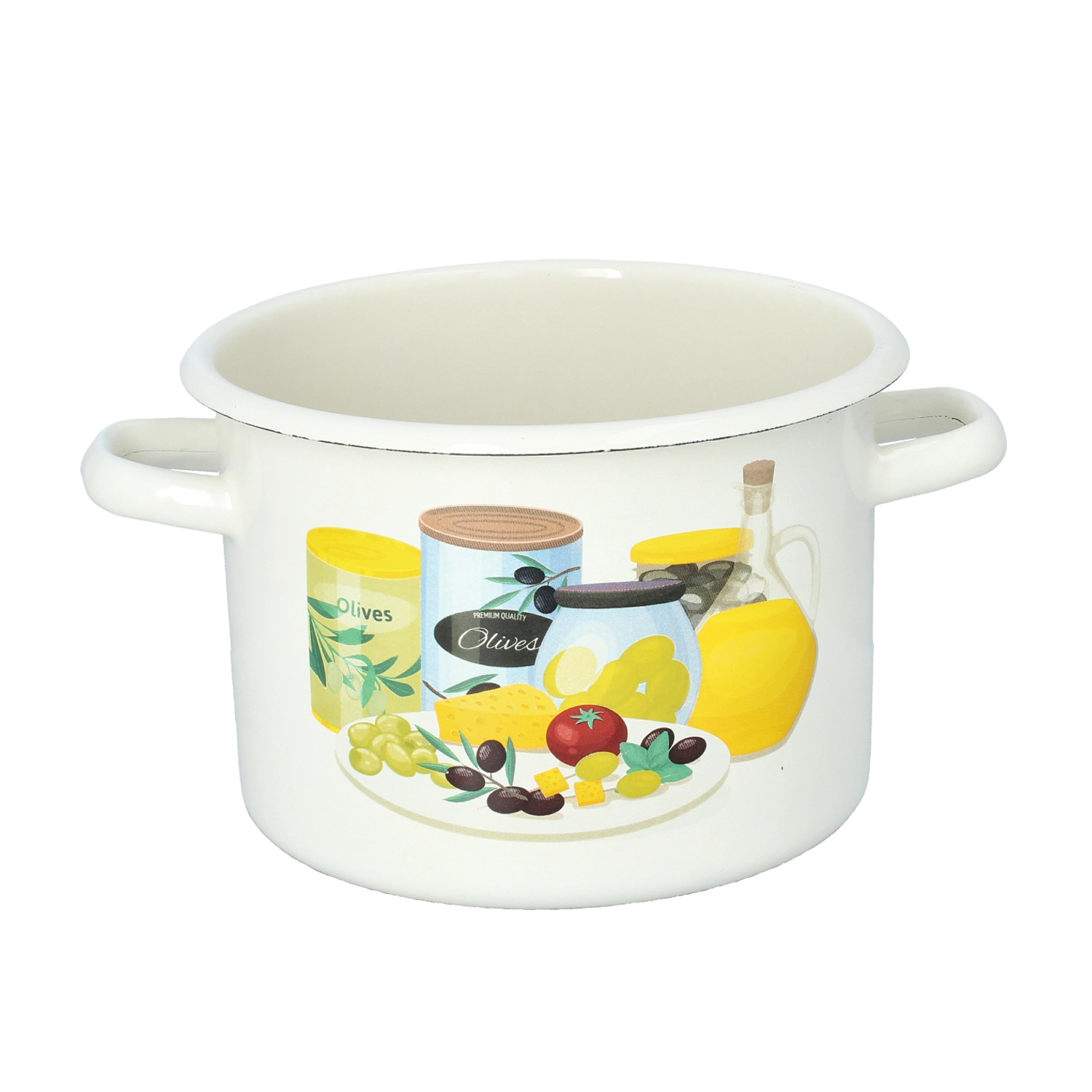 Vsaďte na nadčasový design a praktičnost. Tento krémový emaliovaný hrnec s jemným olivovým motivem díky své kapacitě 3 l skvěle poslouží na polévky, omáčky i přílohy. Emaliovaný povrch z uhlíkové oceli zajišťuje rychlé a rovnoměrné zahřívání, což pomáhá šetřit čas i energii.