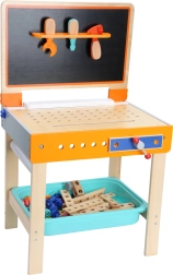 Díky stabilní dřevěné konstrukci, přehlednému úložnému boxu na součástky a dodaným skládacím komponentům děti snadno rozvíjejí jemnou motoriku, fantazii i technické myšlení. Ideální do dětského pokoje i herny.