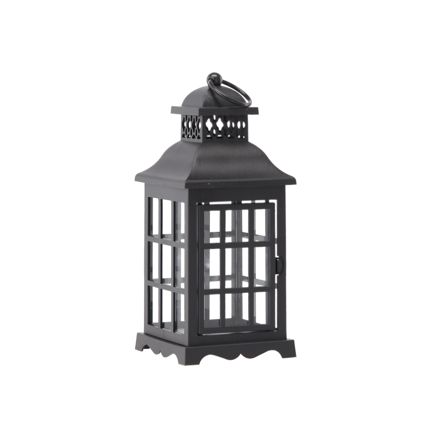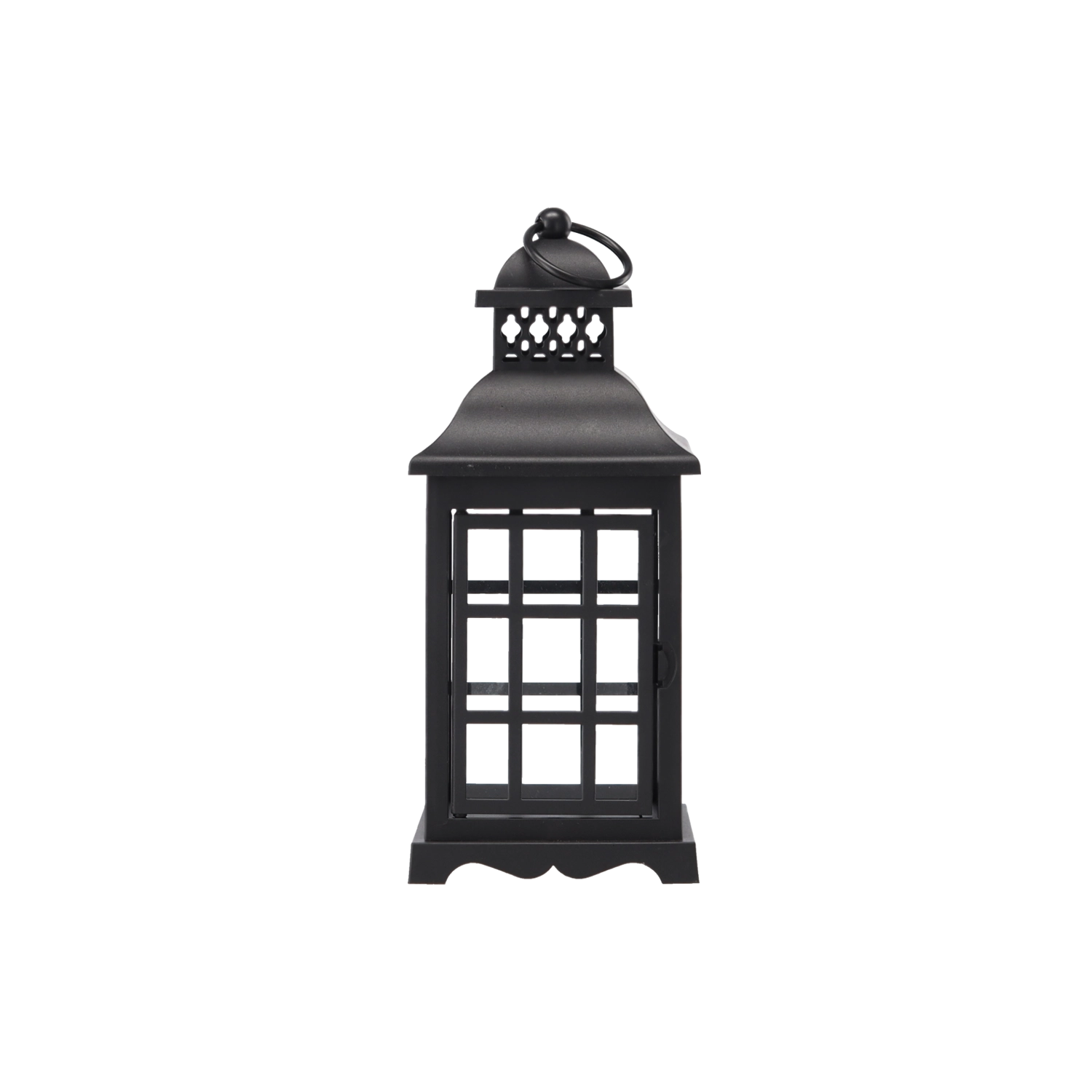 Elegantní prázdná lucerna v černé barvě s praktickými dvířky a dekorativní mřížkou. Ideální pro vlastní dozdobení, domácí interiér i hřbitovní výzdobu. Odolné provedení a univerzální design pro stylové osvětlení a dekoraci kdykoli během roku.