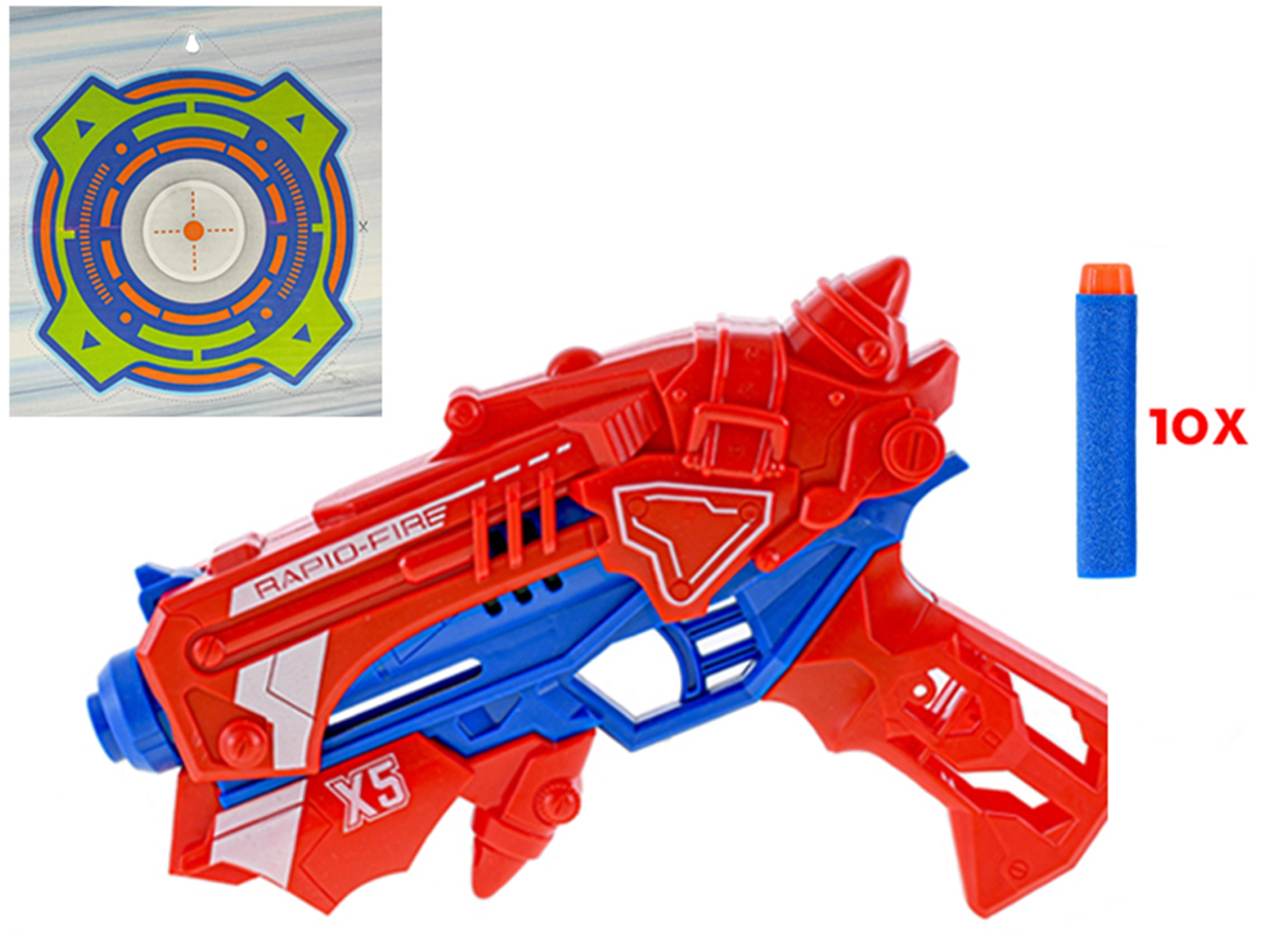 - 1 pistole, 10 pěnových nábojů, 1 terč