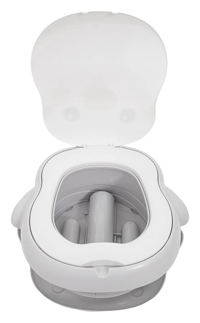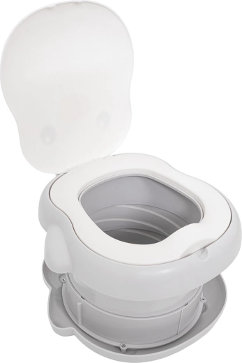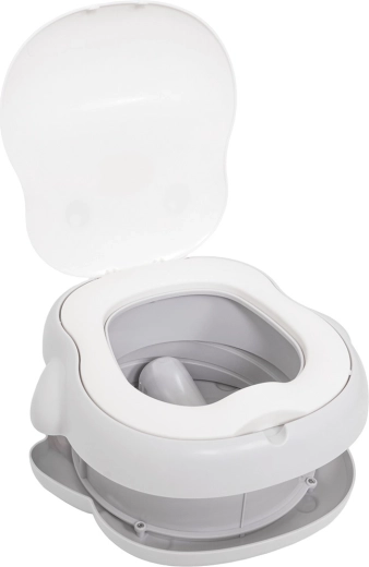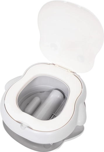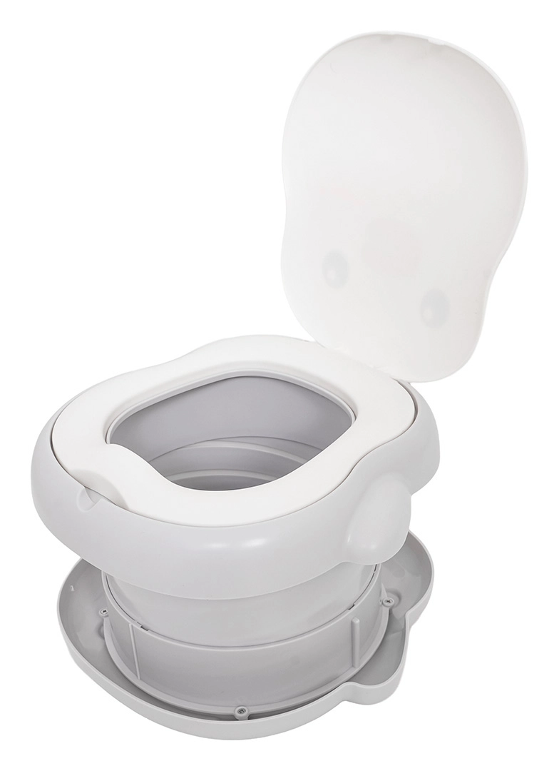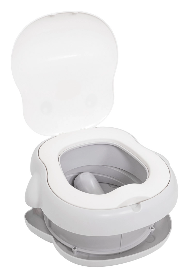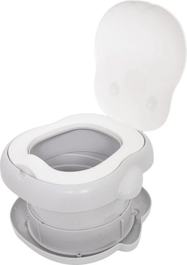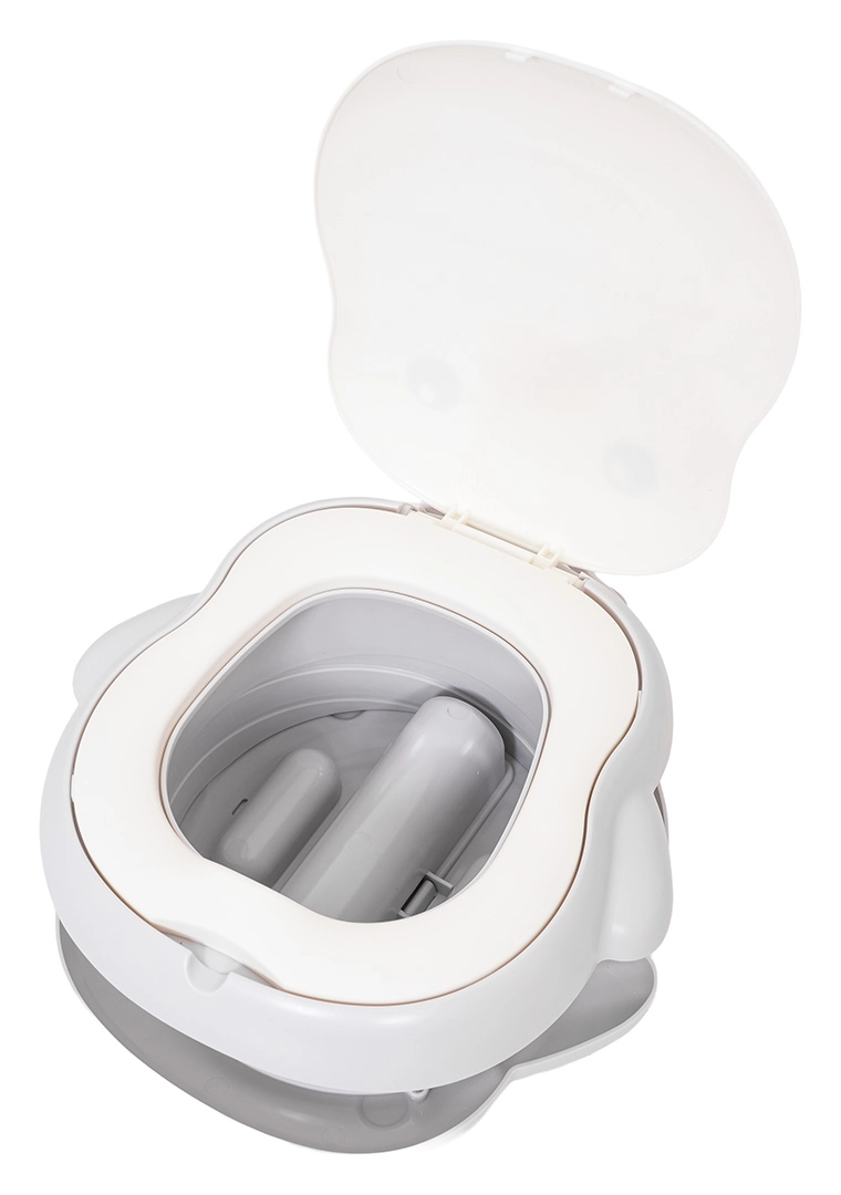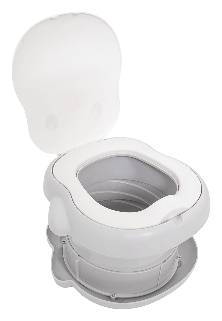 Kompaktní a hygienický cestovní nočník pro děti s rychlým složením/rozložením, snadným čištěním a protiskluzovou základnou. Součástí je rolka jednorázových sáčků a úložný prostor ve dně nočníku, plus taška na přenášení. Ideální řešení na cesty a výlety, minimalizuje stres v nuzových situacích.