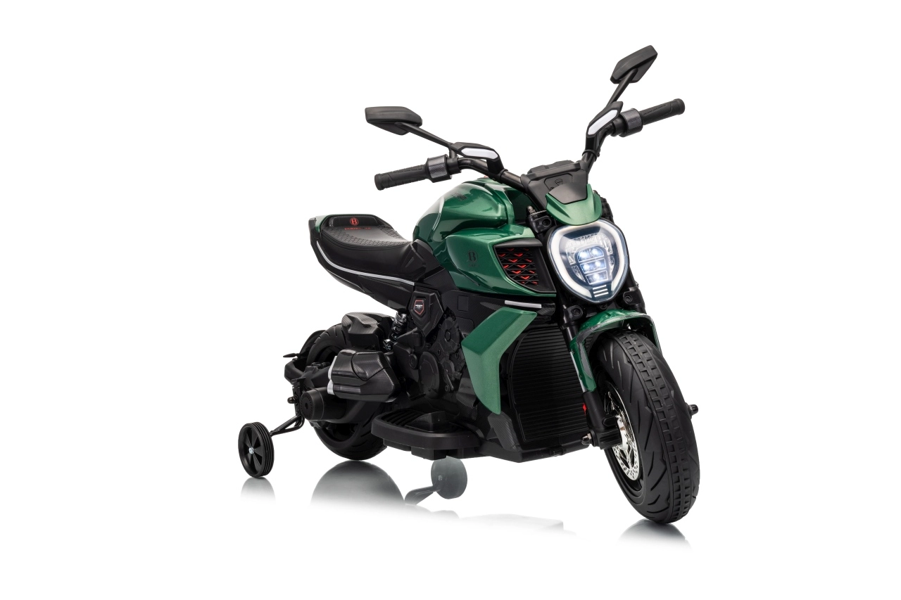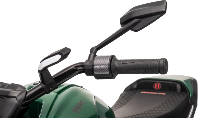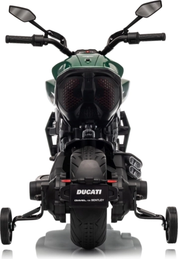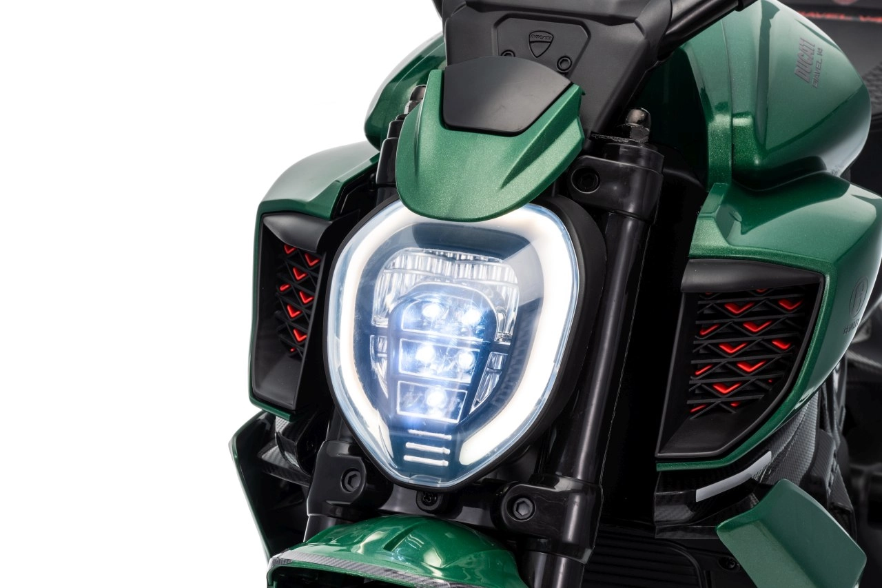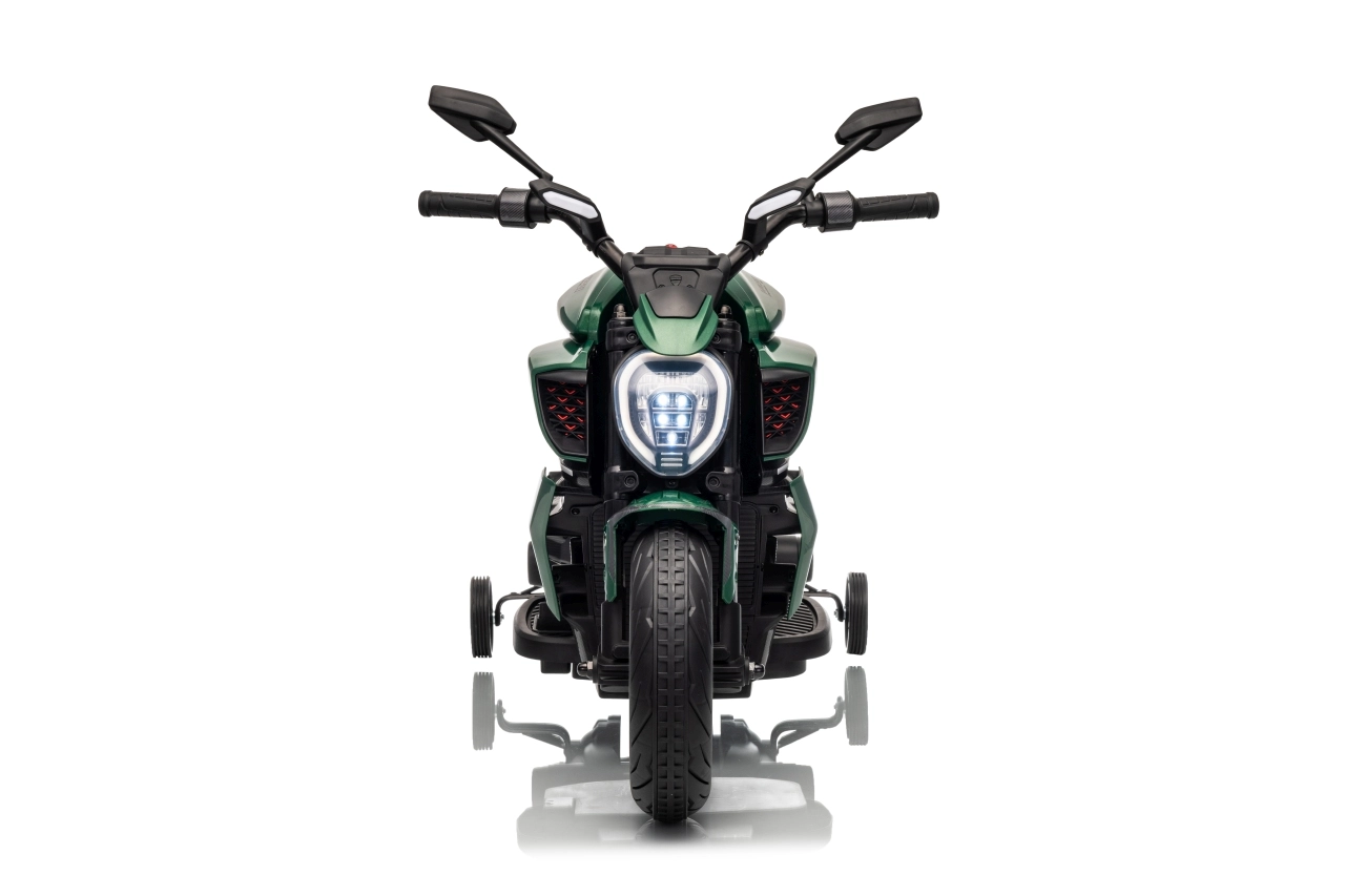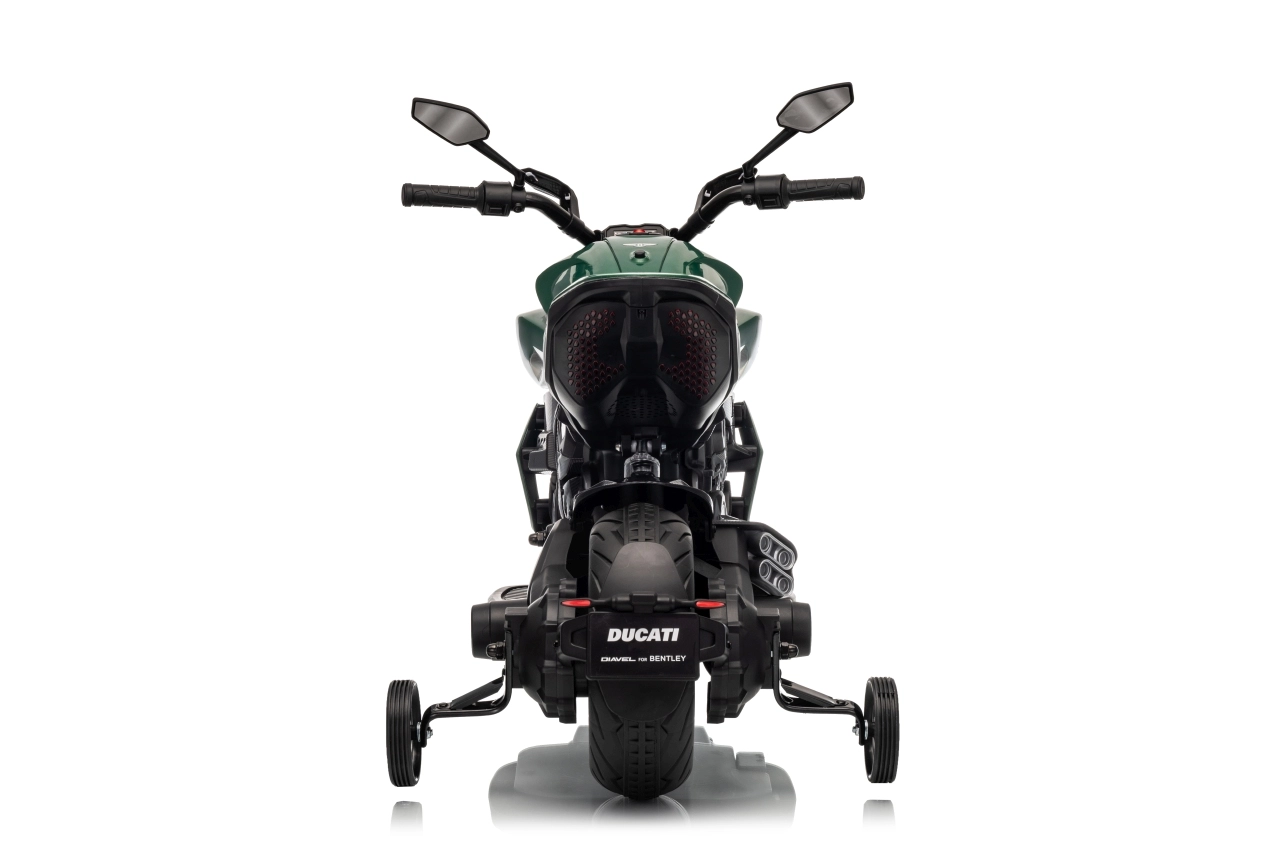 Stylová dětská elektrická motorka inspirovaná ikonou DUCATI Diavel x BENTLEY nadchne malé jezdce realistickým vzhledem, širokými koly a stabilizačními bočními kolečky. Nabízí 2 rychlosti vpřed, plynulý rozjezd, výkonné motory 2×35 W, 12V/7Ah akumulátor, LED přední světlo a audio panel s MP3 a Bluetooth pro maximální porci zábavy i bezpečí.