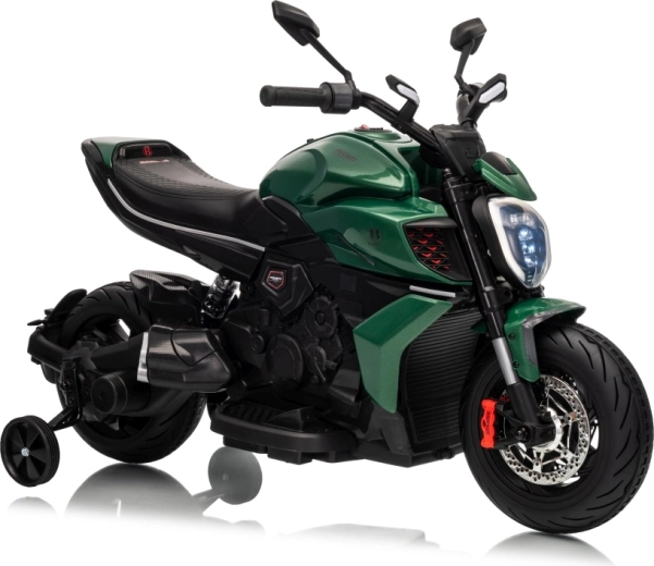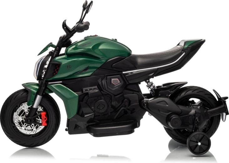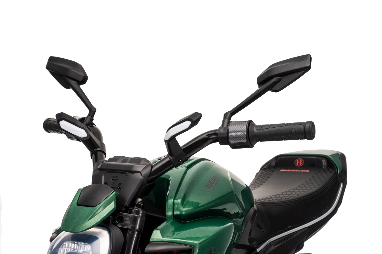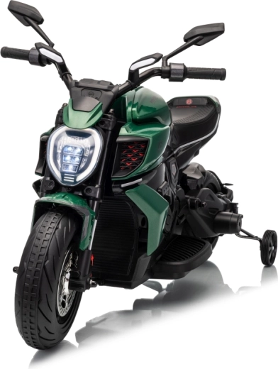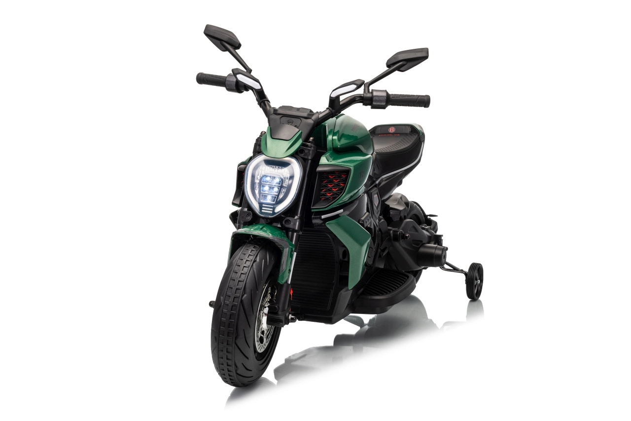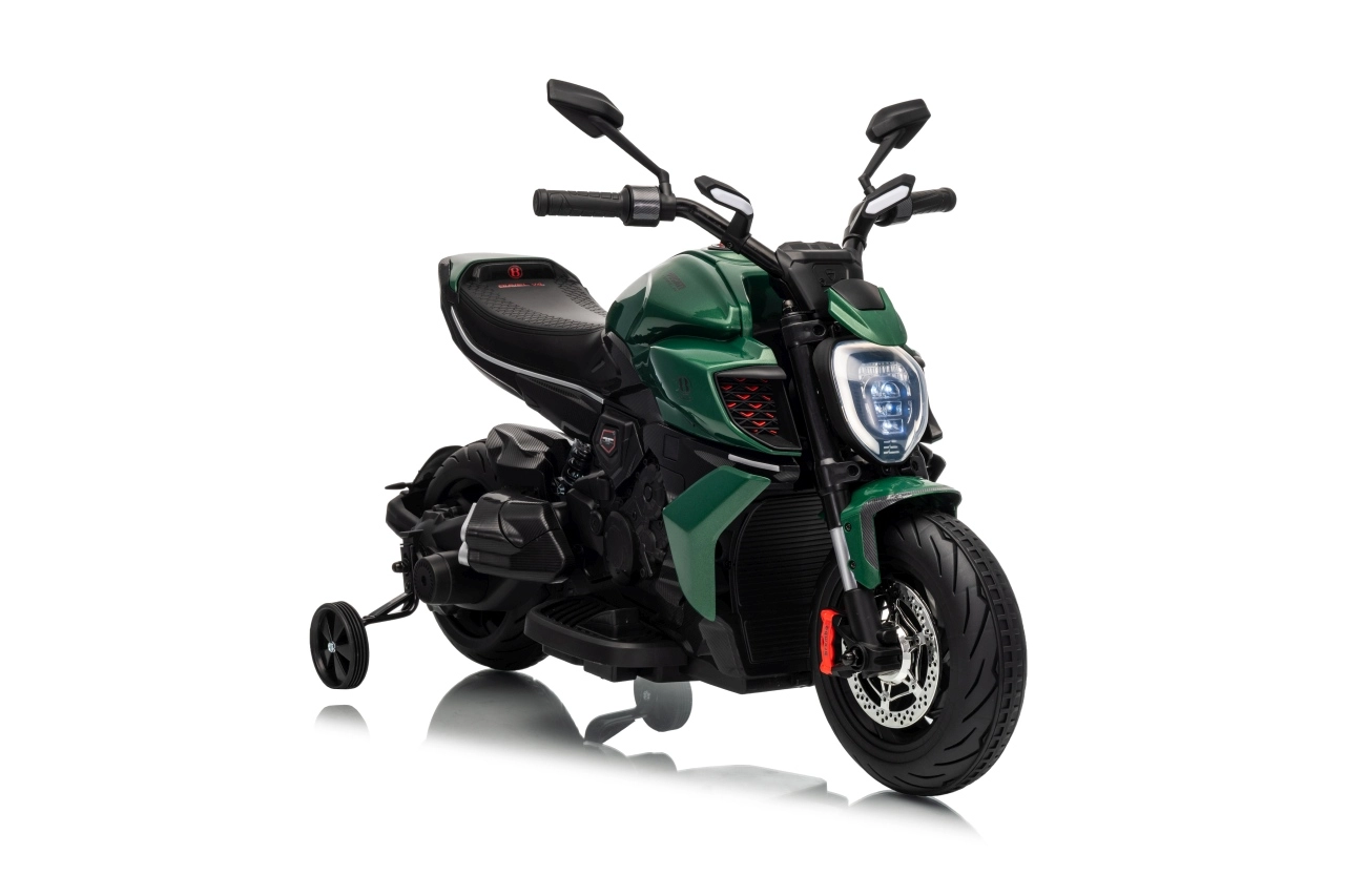 Stylová dětská elektrická motorka inspirovaná ikonou DUCATI Diavel x BENTLEY nadchne malé jezdce realistickým vzhledem, širokými koly a stabilizačními bočními kolečky. Nabízí 2 rychlosti vpřed, plynulý rozjezd, výkonné motory 2×35 W, 12V/7Ah akumulátor, LED přední světlo a audio panel s MP3 a Bluetooth pro maximální porci zábavy i bezpečí.