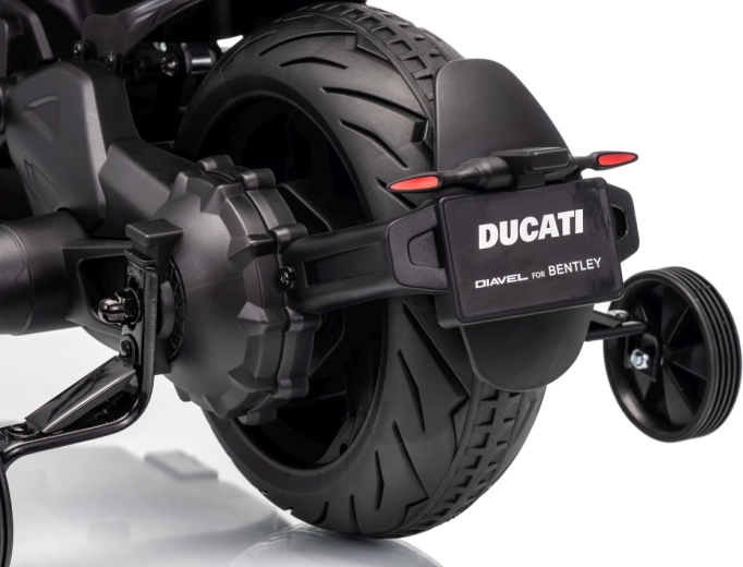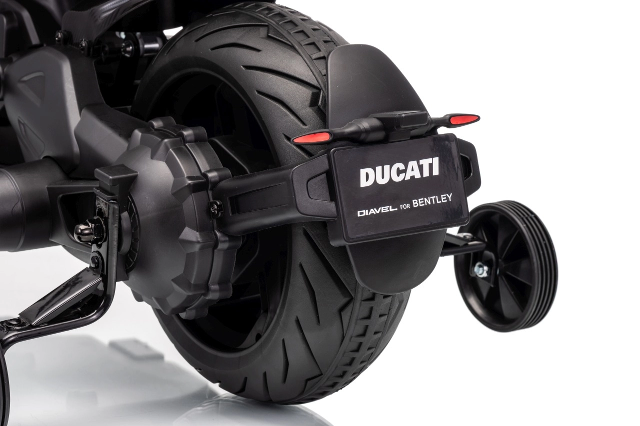 Objevte prémiovou dětskou motorku s designem sportovního stroje DUCATI Diavel x BENTLEY. Široké EVA kola, stabilizační kolečka a plynulý start zajišťují jistotu i pro začátečníky. Díky 2 rychlostem a zadnímu tlumiči s regulací je jízda pohodlná doma i venku.