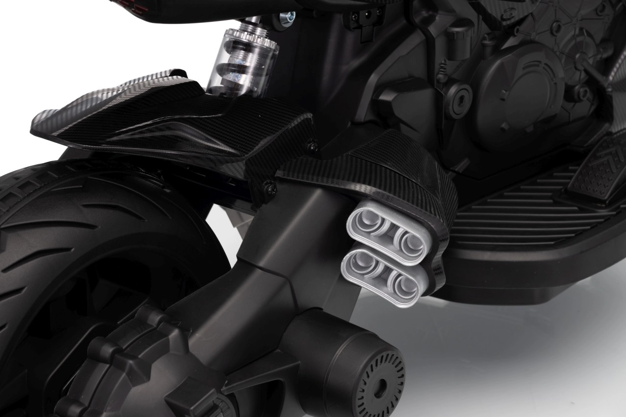 Motorka je vybavena LED předním světlem pro lepší viditelnost a moderním audio panelem s MP3, Bluetooth a vestavěnými melodiemi. Ergonomické sedlo a kvalitní zpracování podporují komfort a dlouhou životnost. Maximální nosnost 30 kg potěší děti i rodiče.