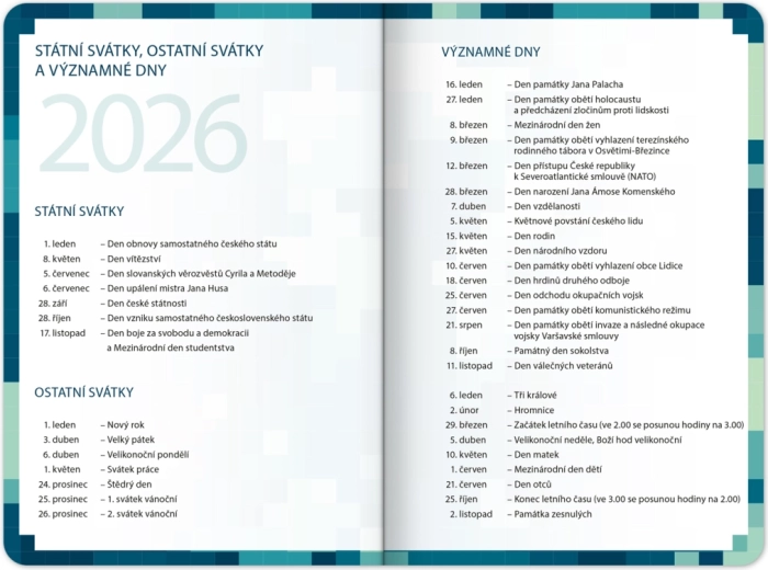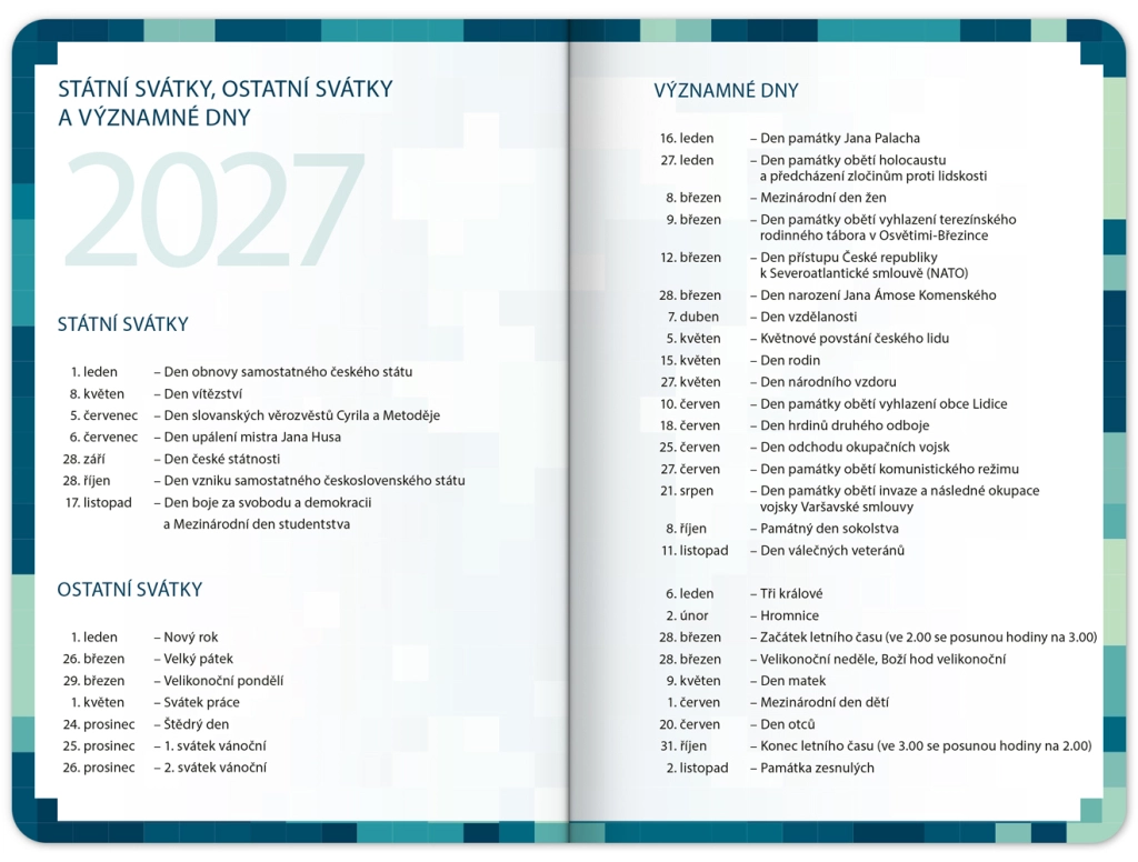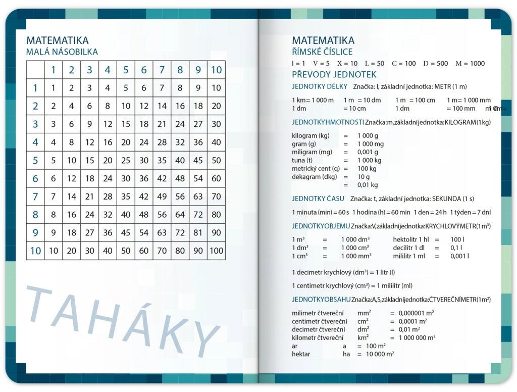 Součástí jsou užitečné studijní pomůcky, které máte vždy po ruce. Najdete zde taháky z klíčových předmětů, rozvrhy pro rychlý přehled hodin a kalendář prázdnin pro snadné plánování.