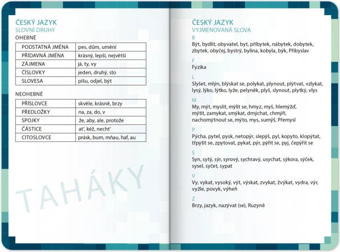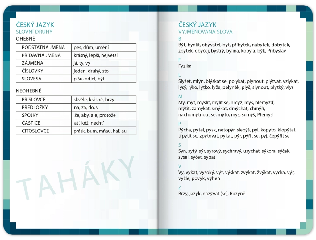 • Studijní taháky: čeština, matematika, angličtina