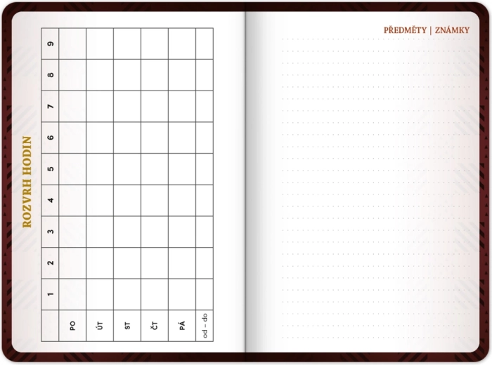 Tento studentský diář pomůže s plánováním testů, úkolů i volnočasových aktivit. Přehled termínů prázdnin a jasná struktura podporují lepší organizaci a produktivitu každý den.