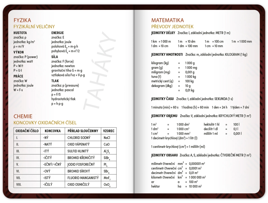 - Studijní opory: rychlé taháky z matematiky, fyziky, chemie a angličtiny.