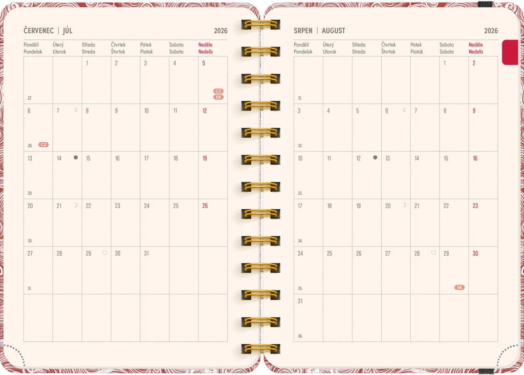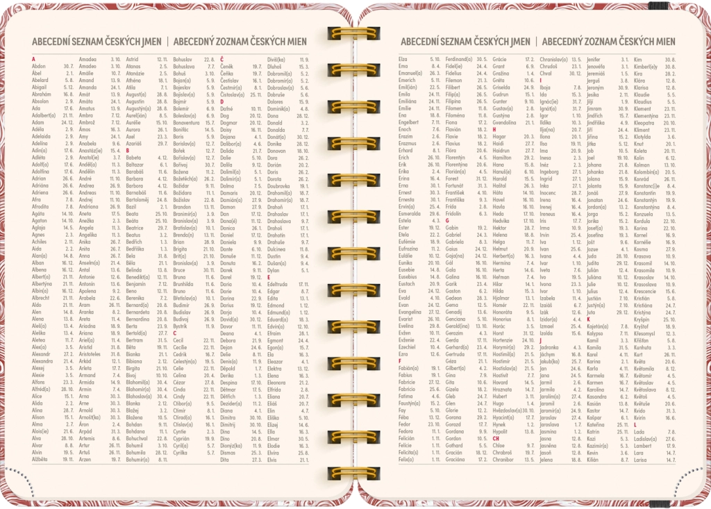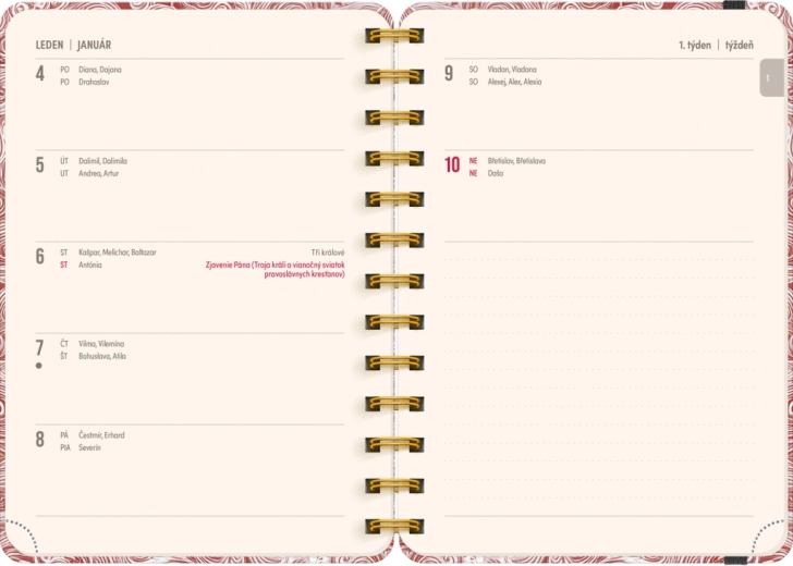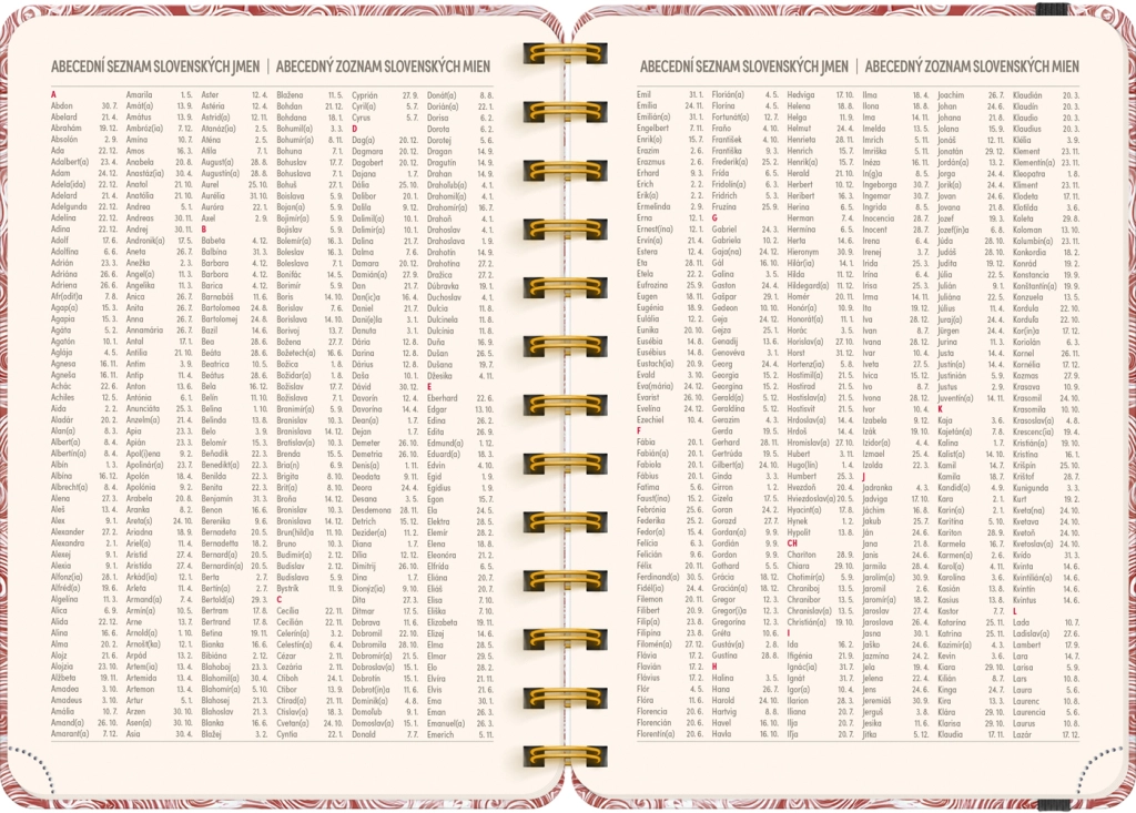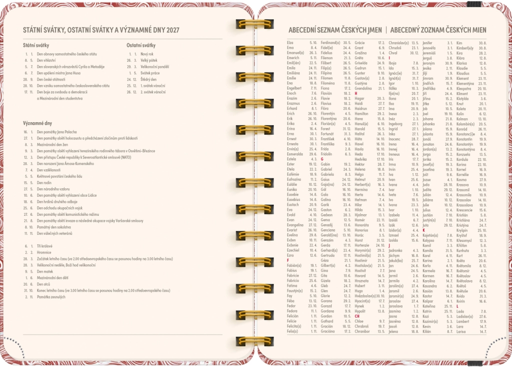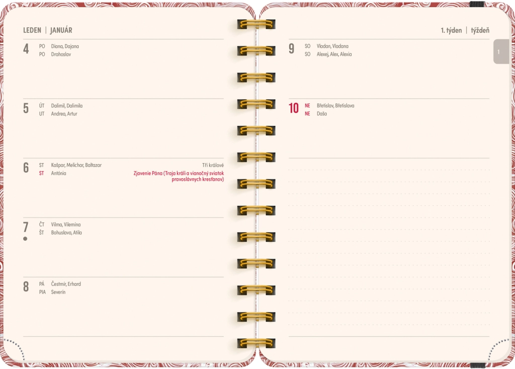 - Týdenní řádkové, česko‑slovenské, se jmény a svátky
