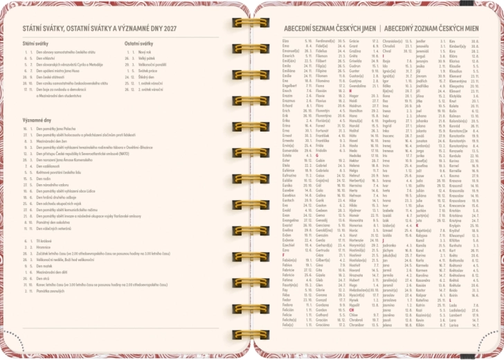 - Užitečné přehledy: roky 2026 a 2027, seznam jmen