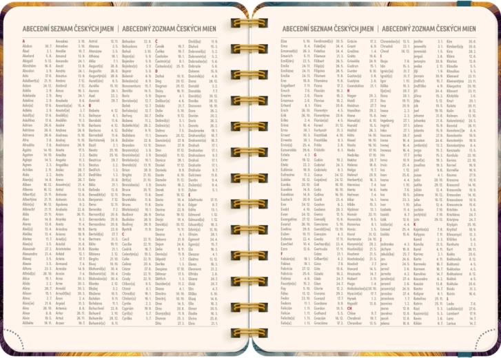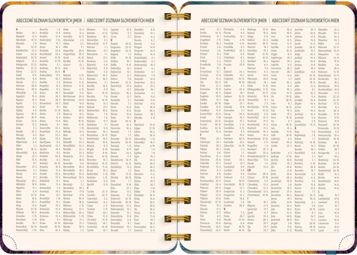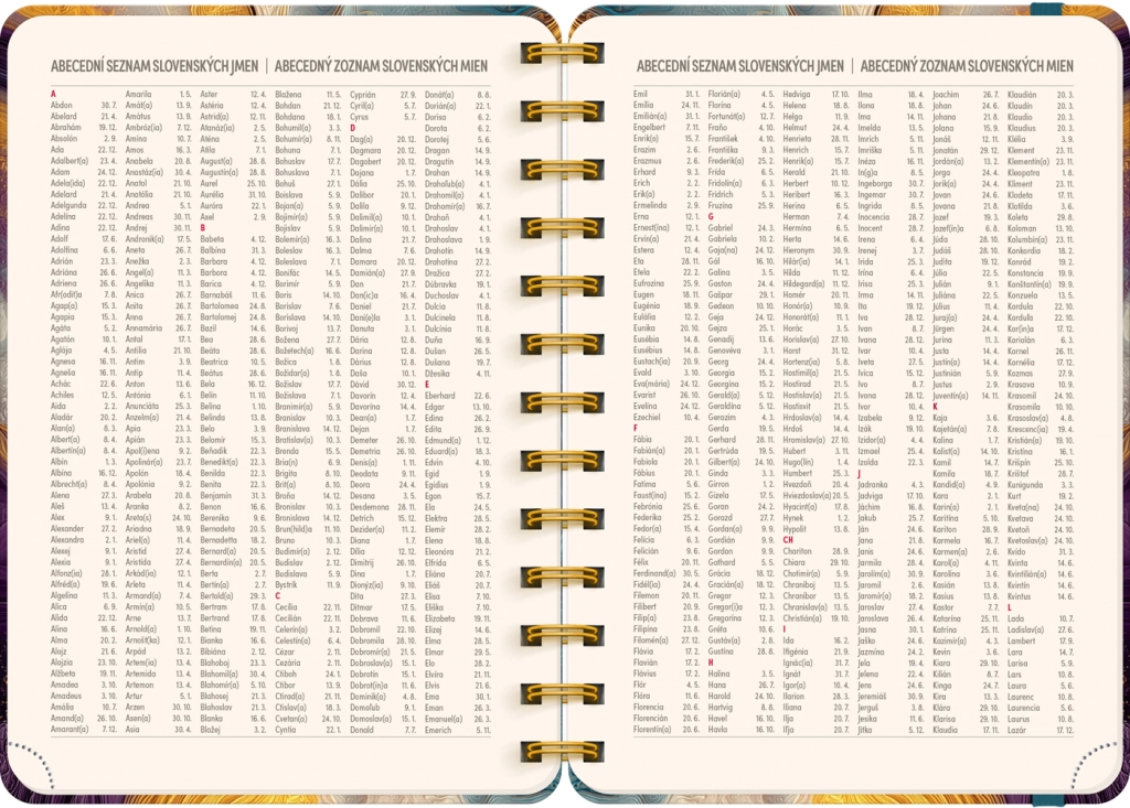 - Seznam českých a slovenských jmen + svátky v kalendáriu