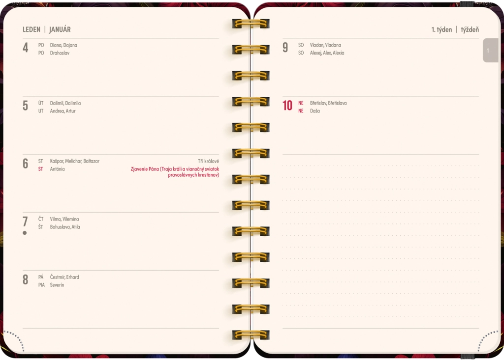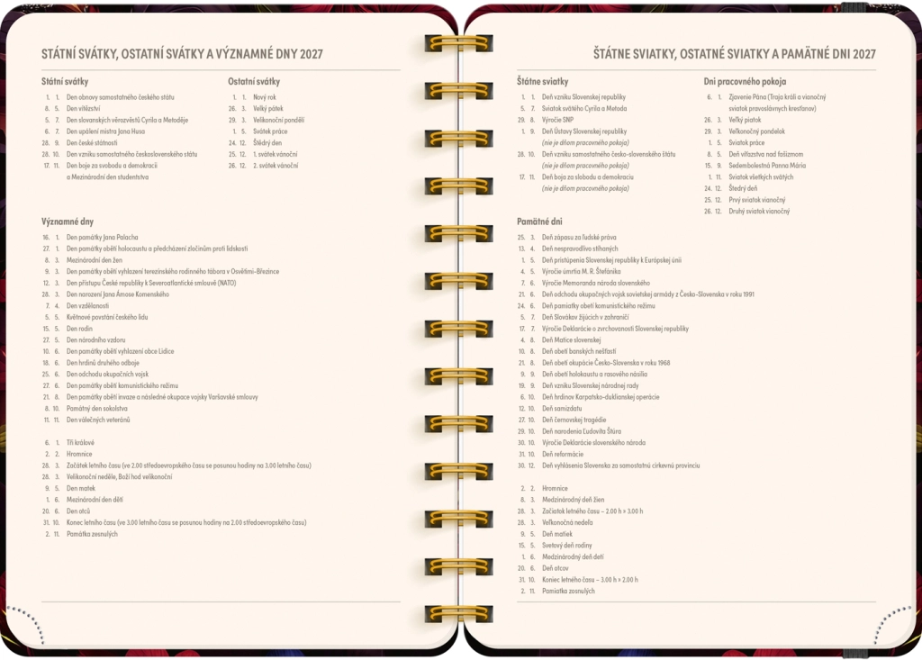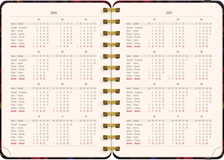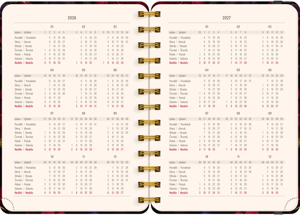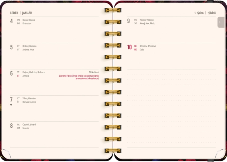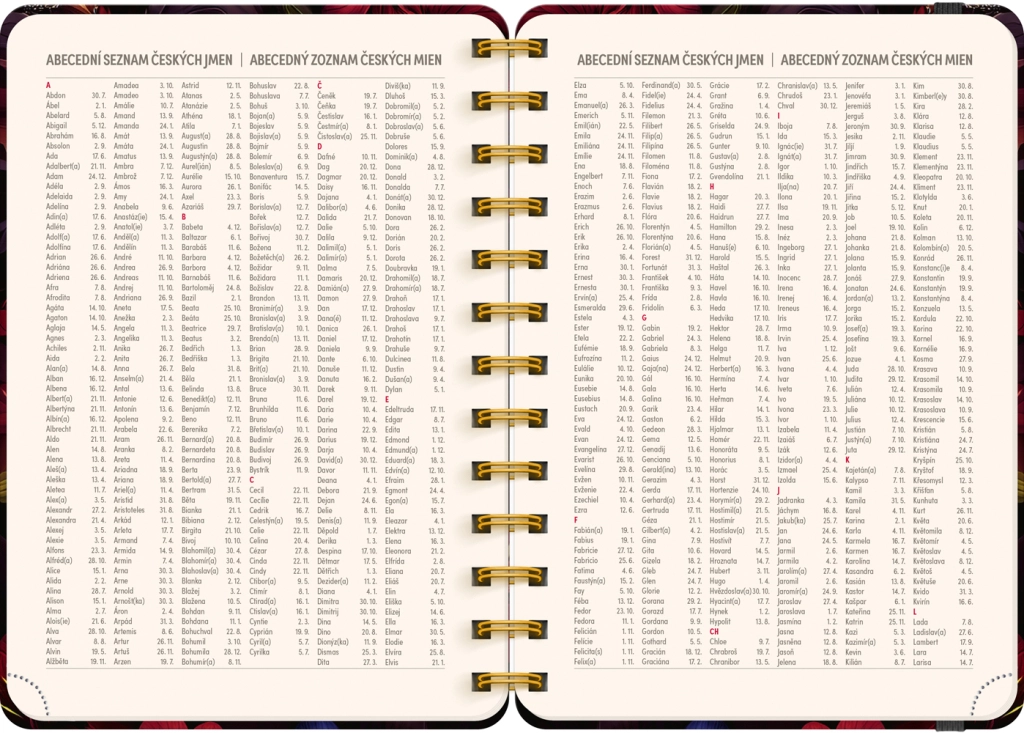 Pořiďte si stylového parťáka na plánování – 18měsíční diář Petito v designu rudých květů. Díky přehlednému česko‑slovenskému týdennímu kalendáriu se jmény a svátky budete mít vždy přehled o důležitých datech. Spirálová vazba umožňuje pohodlné otevírání a psaní na plocho.